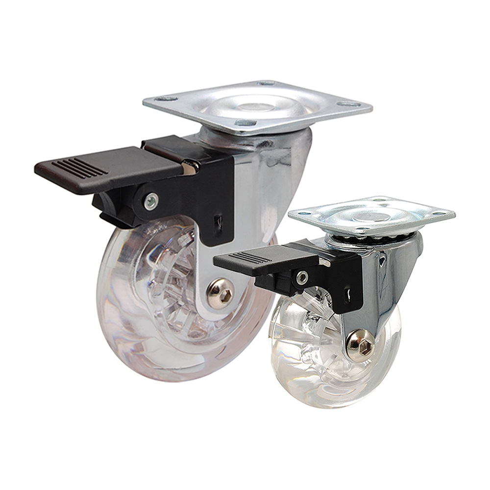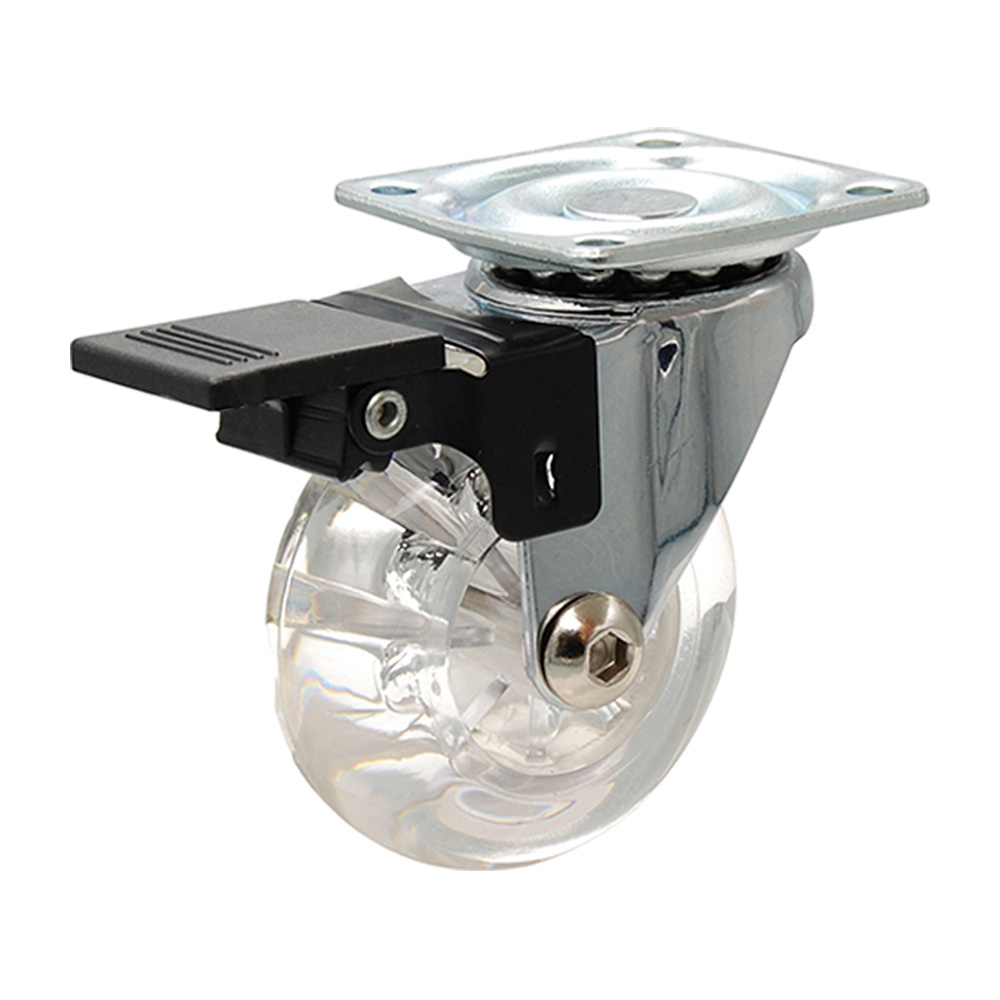 Zwenkwiel inline skate wiel met rem - plaat - transparant