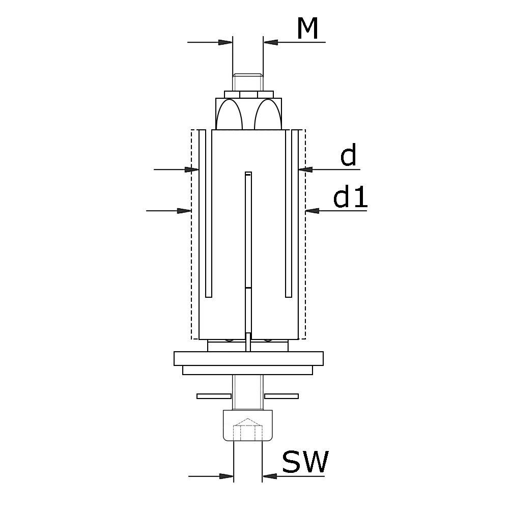 Boring=tbv binnenmaat (Klembereik), d=Minimale