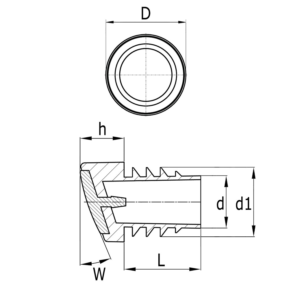 Insteekdop Schuine Voet Pt Ø20 mm 12º-18º Zwart