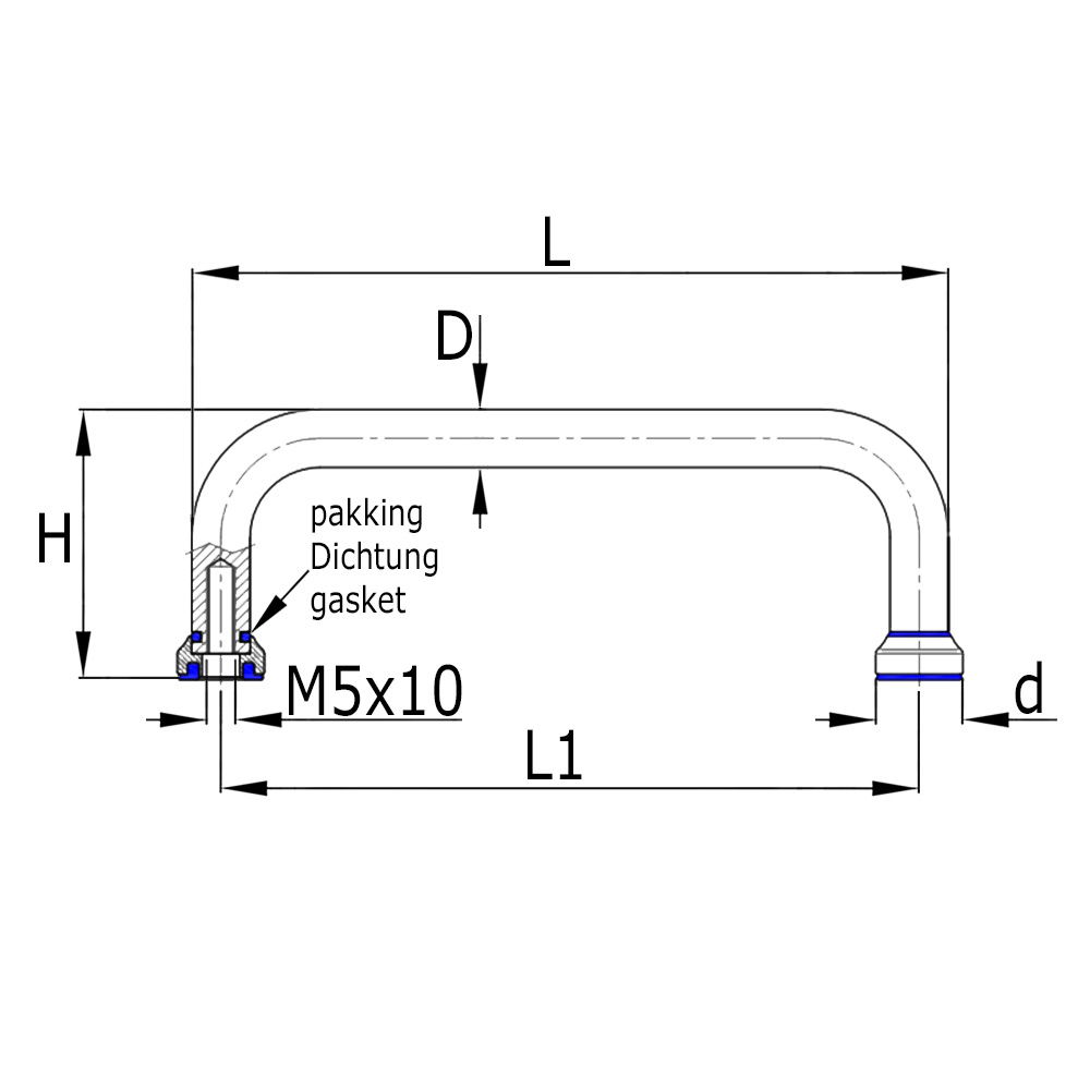 Beugelgreep RVS 304 - 88/98mm M5 met Blauwe Dichtring - Hygiene 3-A