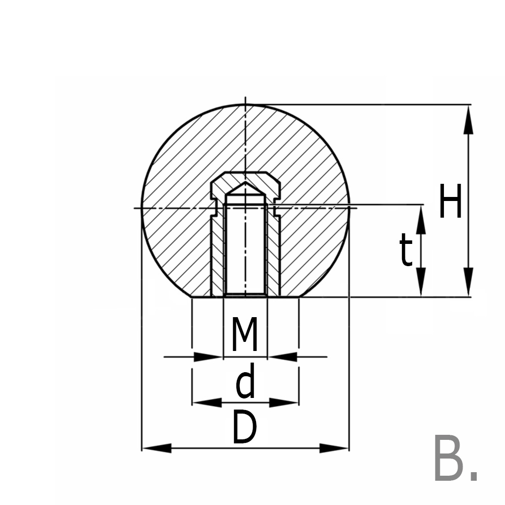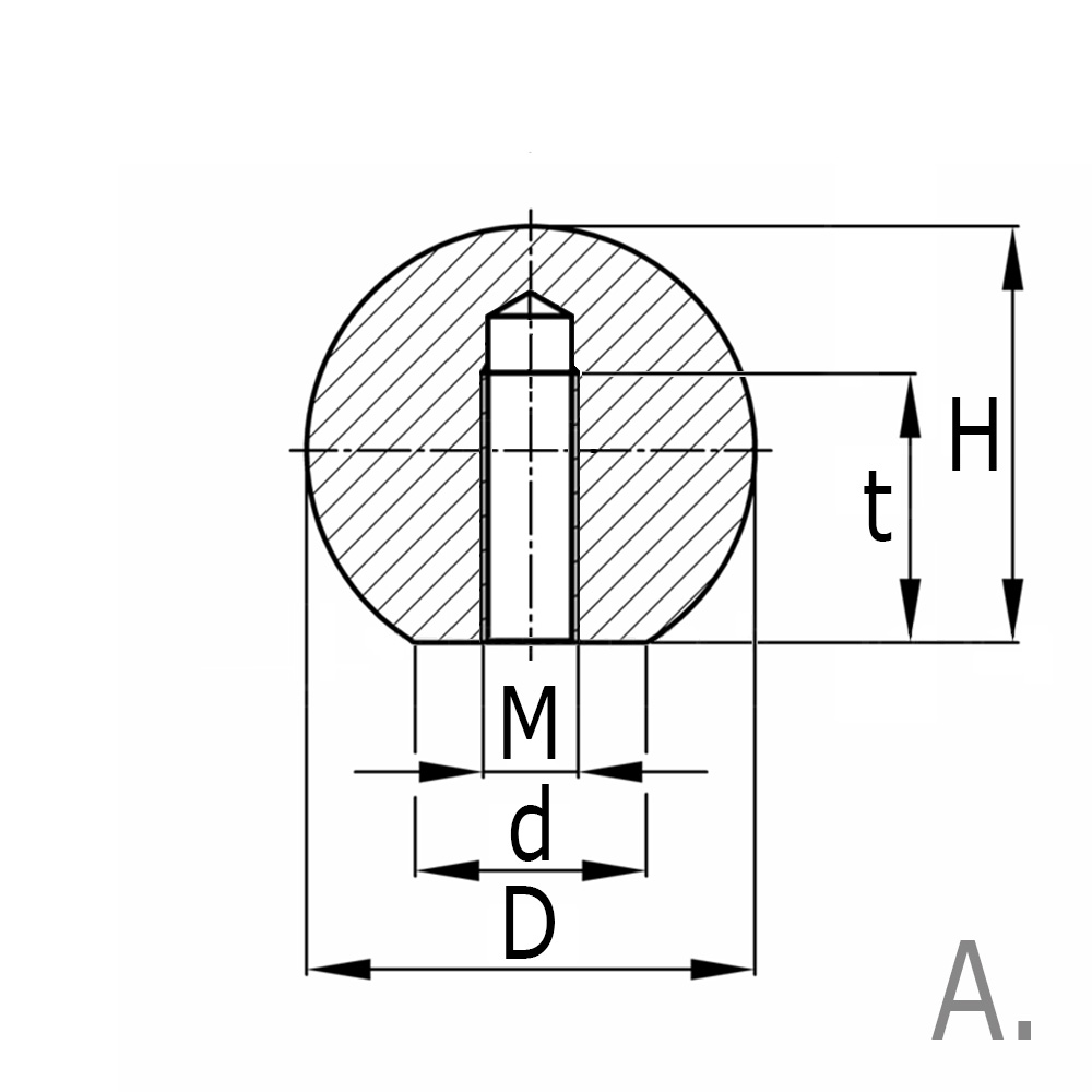 d=Ø-vlakke zijde, M=Schroefdraad, Type=Uitvoering