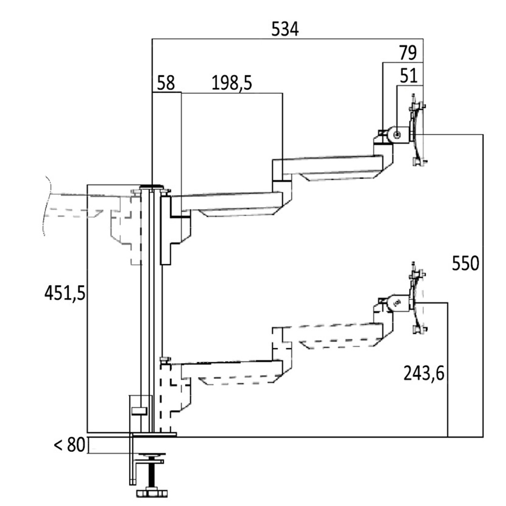 Monitorarm Damian – SET - met gasveer arm 2-10kg – 2 schermen