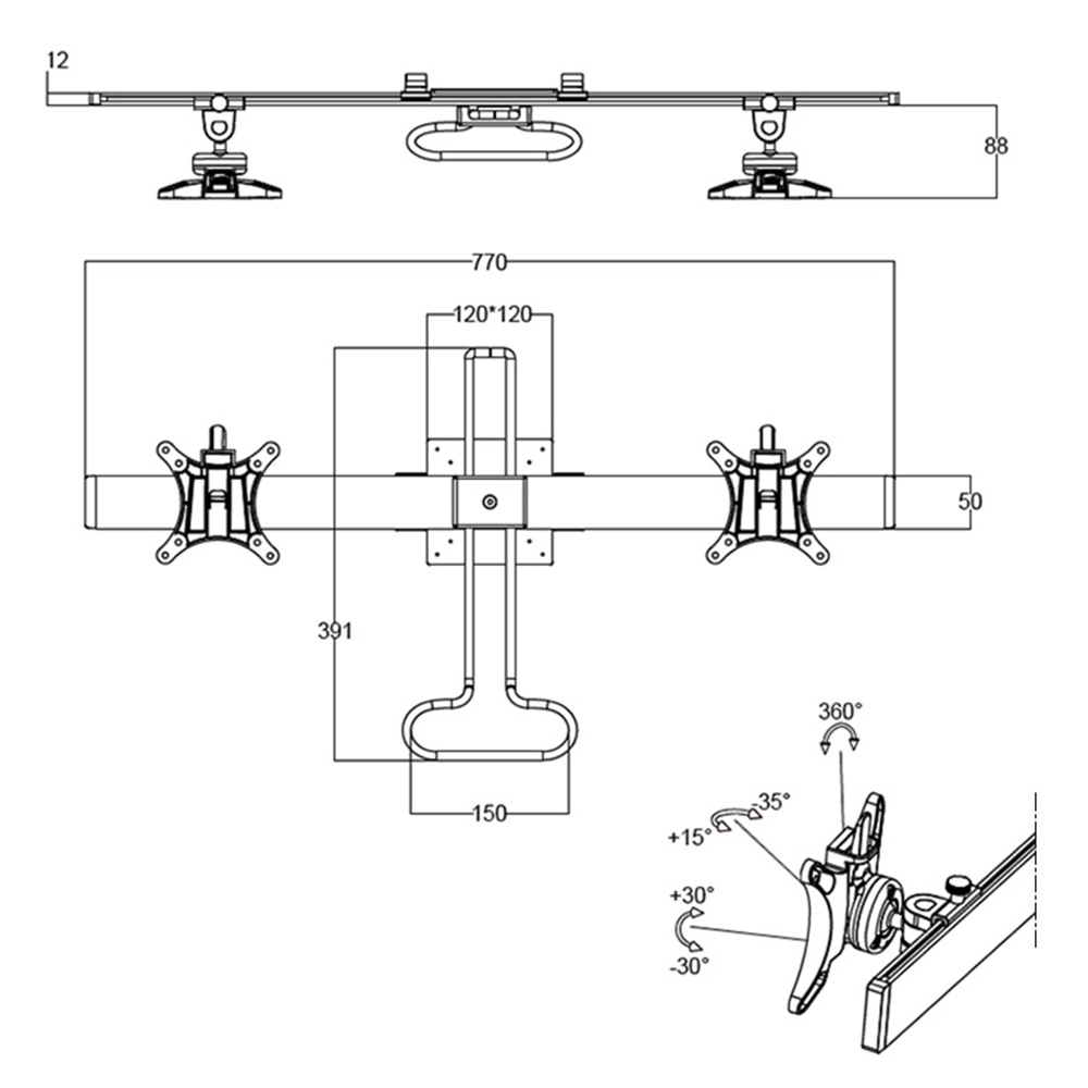 Verstelbare crossbar (dual screen) – Galaxy monitorarmen