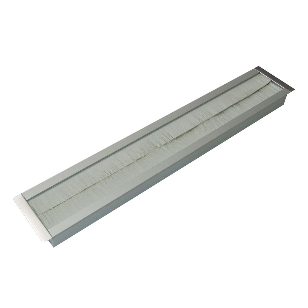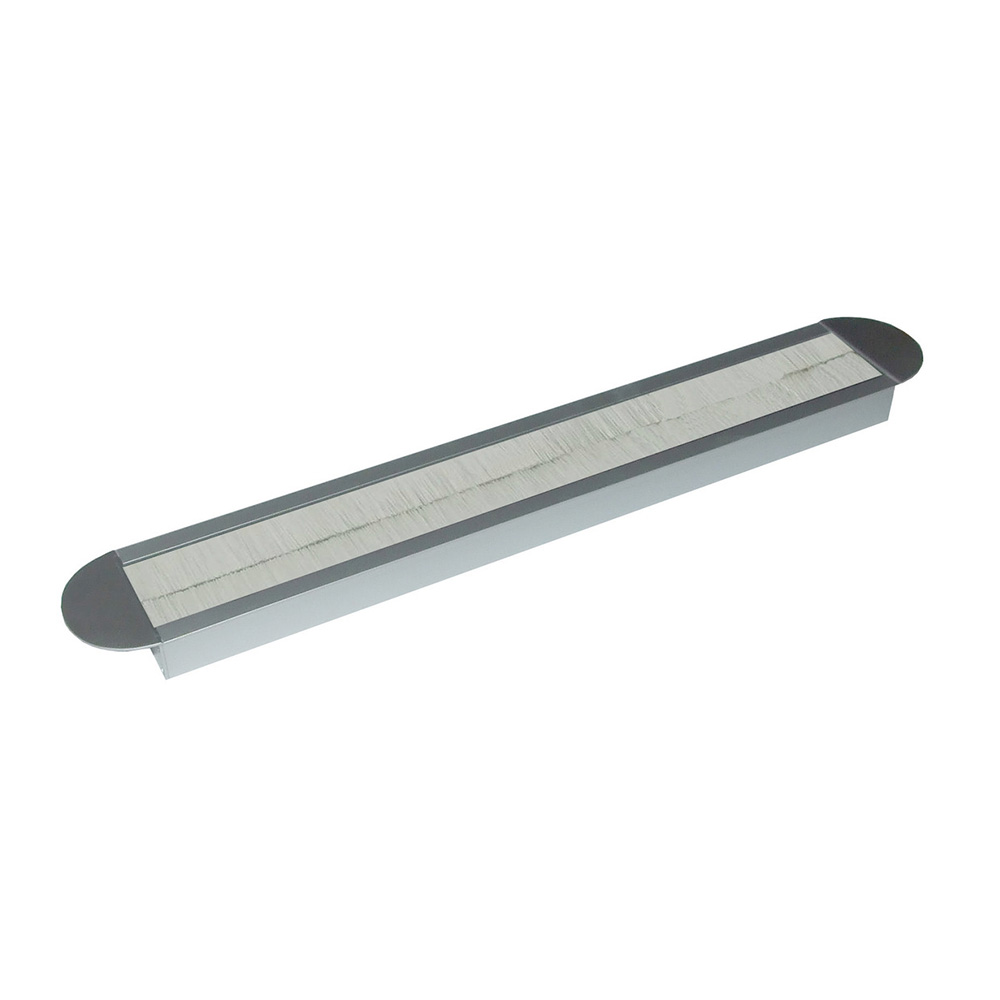 Kabeldoorvoer Geanodiseerd Aluminium 450X45X19mm - Zwarte Borstels - Halfronde Uiteindes