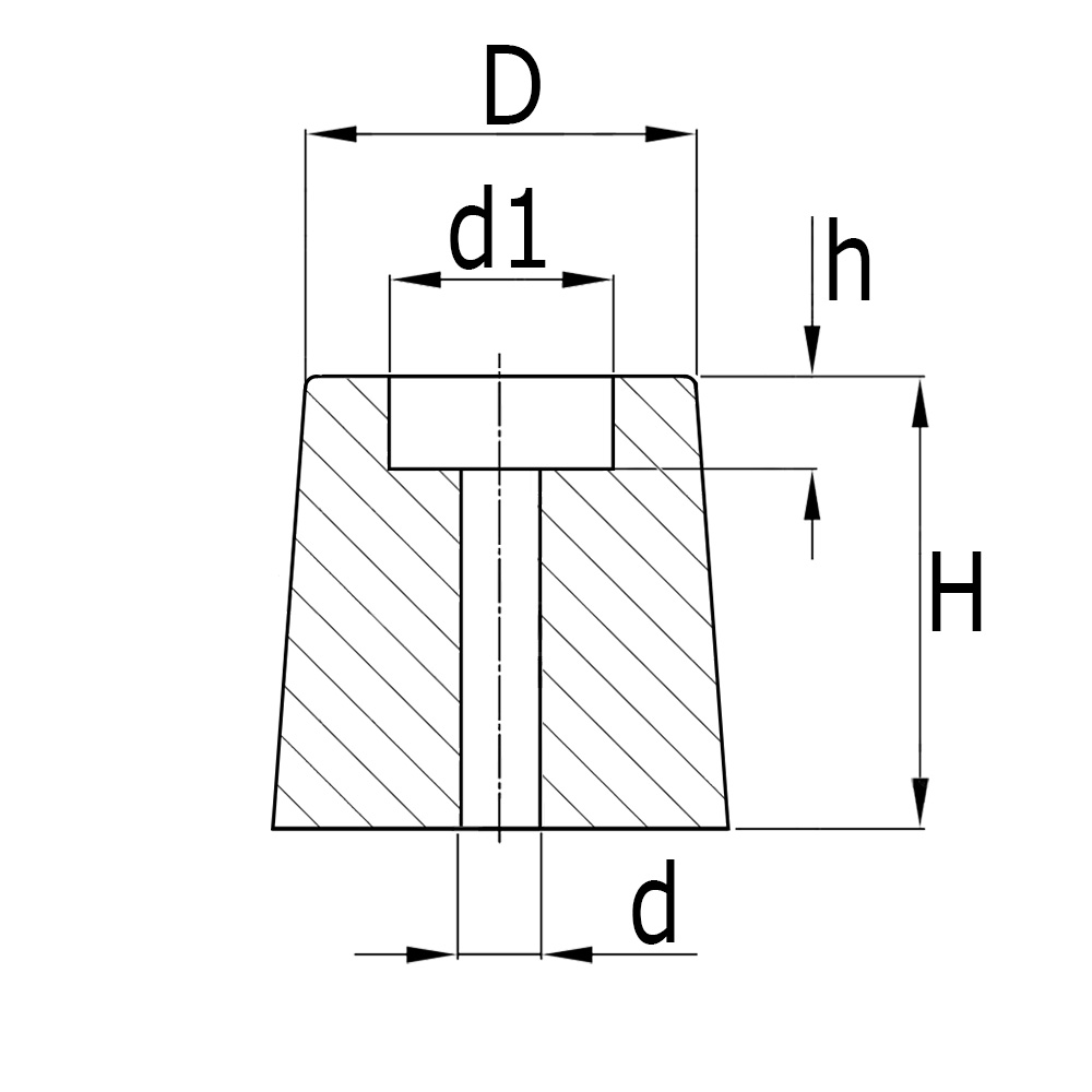 D=Buiten-Ø, d=Boring-Ø, d1=Verzonken-Ø, H=Hoogte, h=Diepte verzonken deel