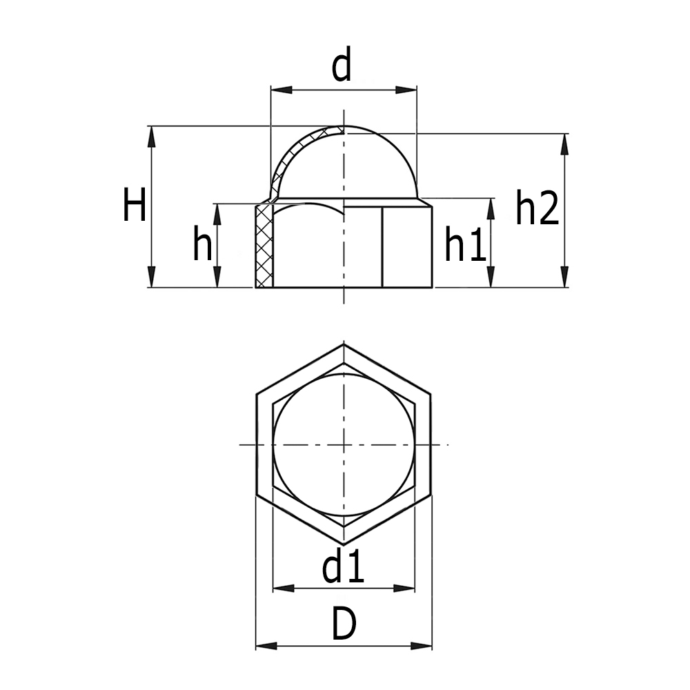 Moerkap bolkop model met zeskant borst PE - M30 - SW 46 - Zwart |