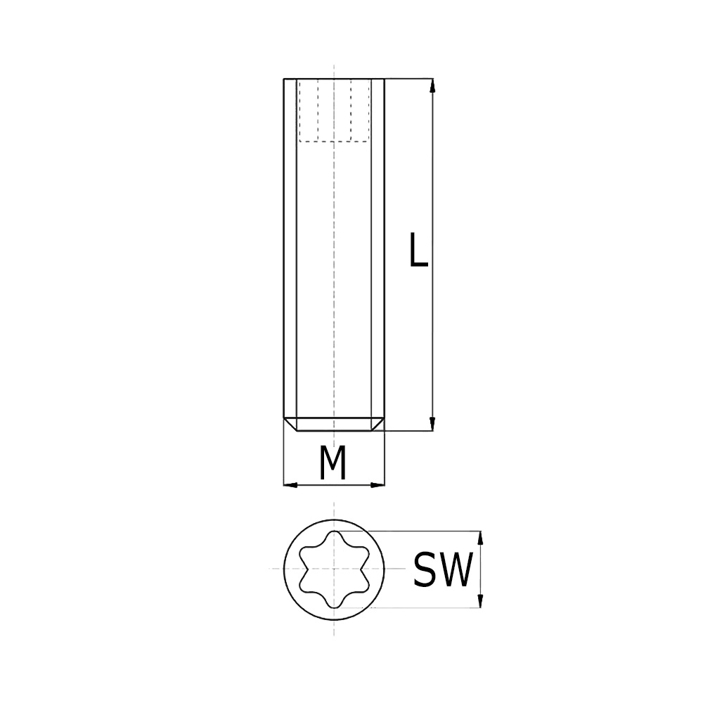 L=Schroefdraadlengte, M=Schroefdraad, SW=Sleutelwijdte Torx
