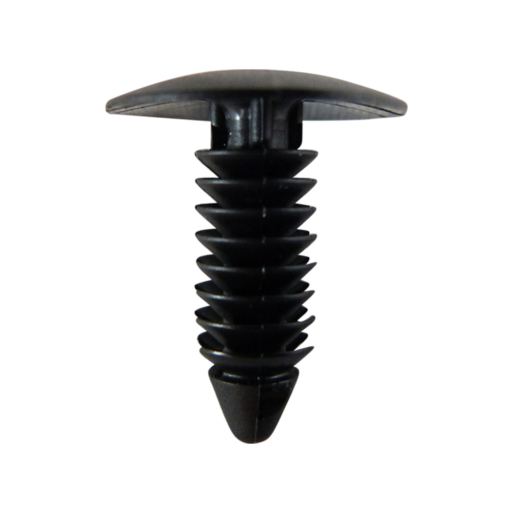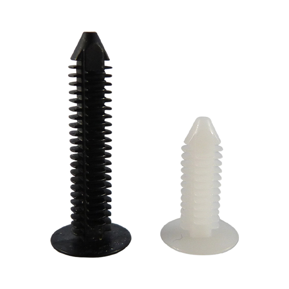 - Kunststof druknagels met pasribben (ribbels), ook wel pine tree clips of bekledingsklemmen genoemd, zijn leverbaar voor boringen van Ø3mm tot en met Ø10mm
