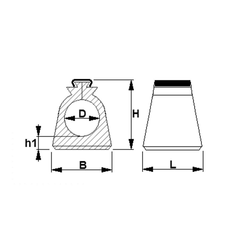 Buisafm.=Uitwendige Buis-Ø, B=Breedte, H=Hoogte, h1=Voethoogte, L=Lengte
