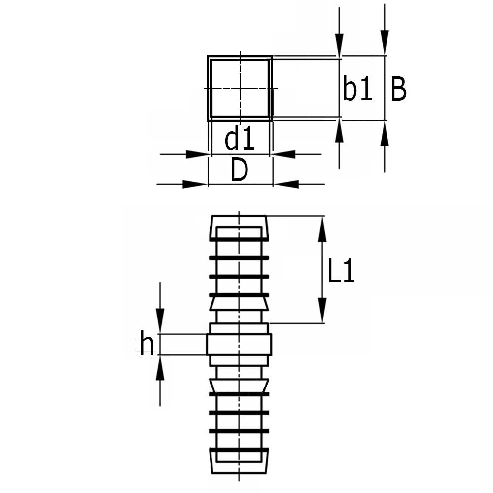 Buisafmeting=Uitwendige kokermaat en wanddikte, d=Kraaglengte, L1=Lengte schaft, Type=Uitvoering met of zonder staalkern
