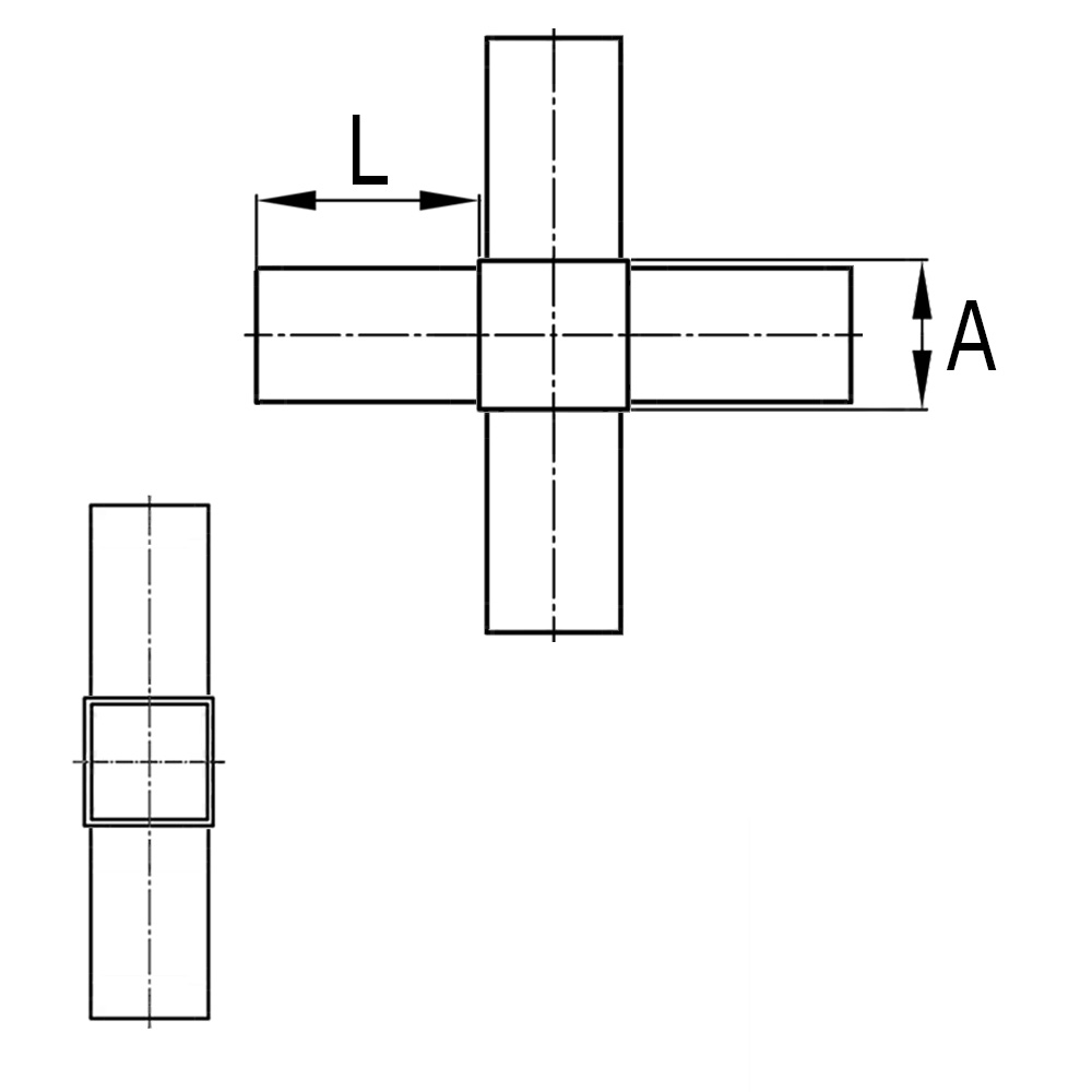 Buisafmeting=Uitwendige kokermaat en wanddikte, d=Kraaglengte, L=Lengte schaft