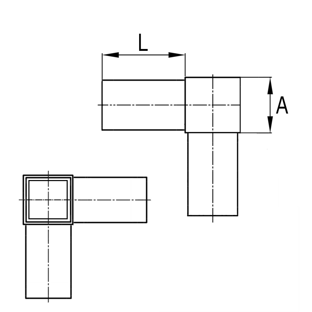 Buisafmeting=Uitwendige kokermaat en wanddikte, d=Kraaglengte, L=Lengte schaft