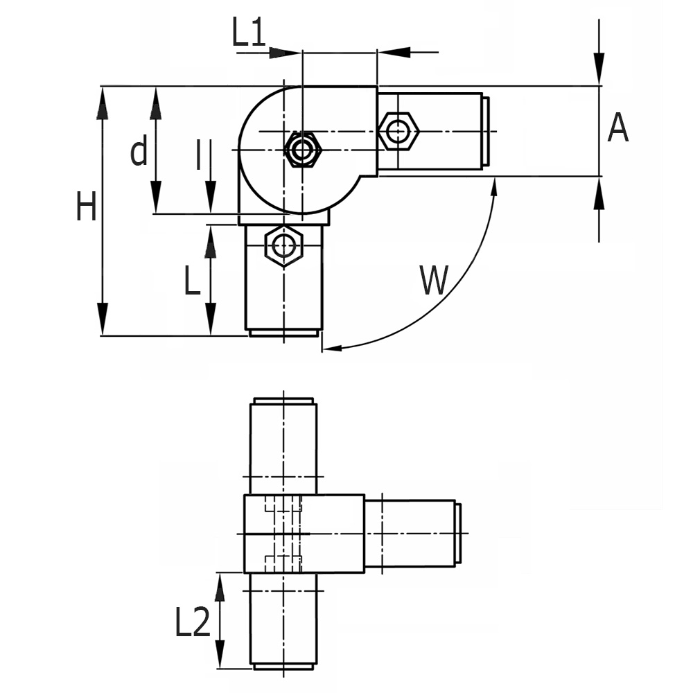 Buisverbinders 1-delig 3D3 – Hoek meervoudig