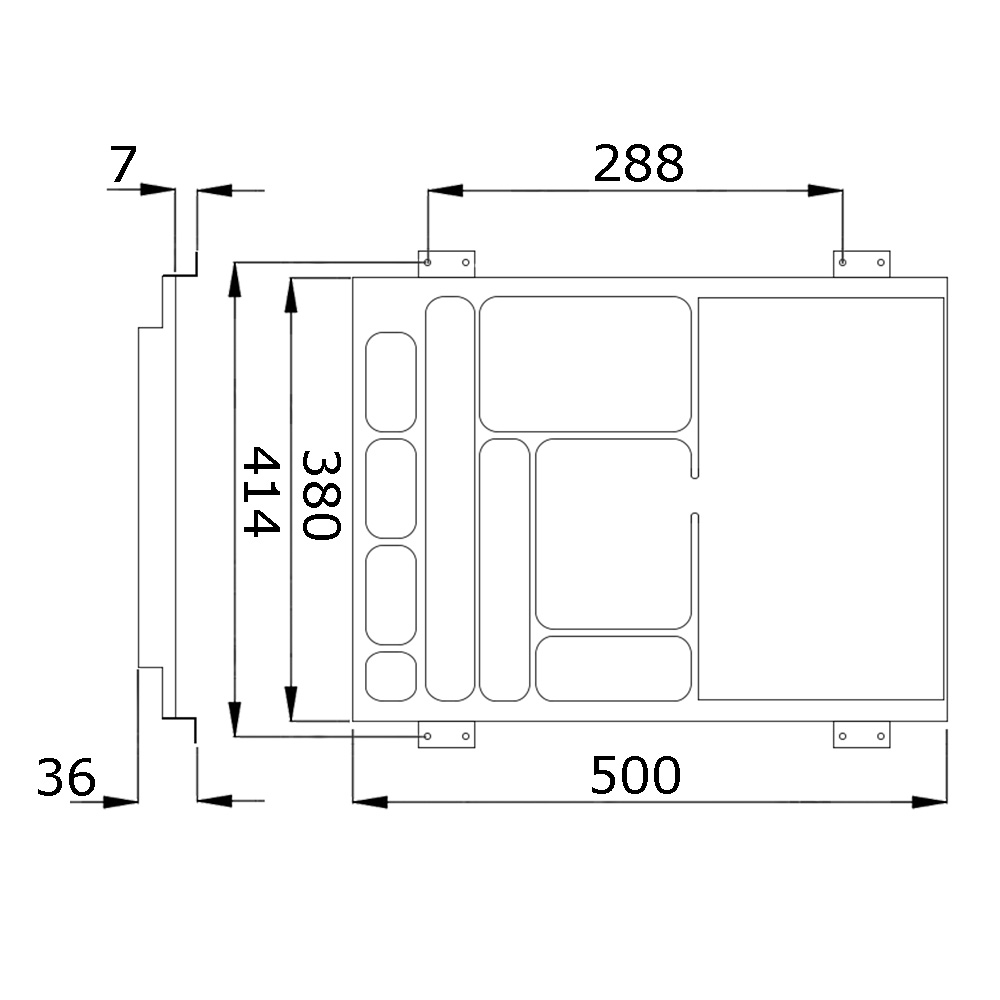 - Afmetingen: B=380mm D=500mm H=36mm
