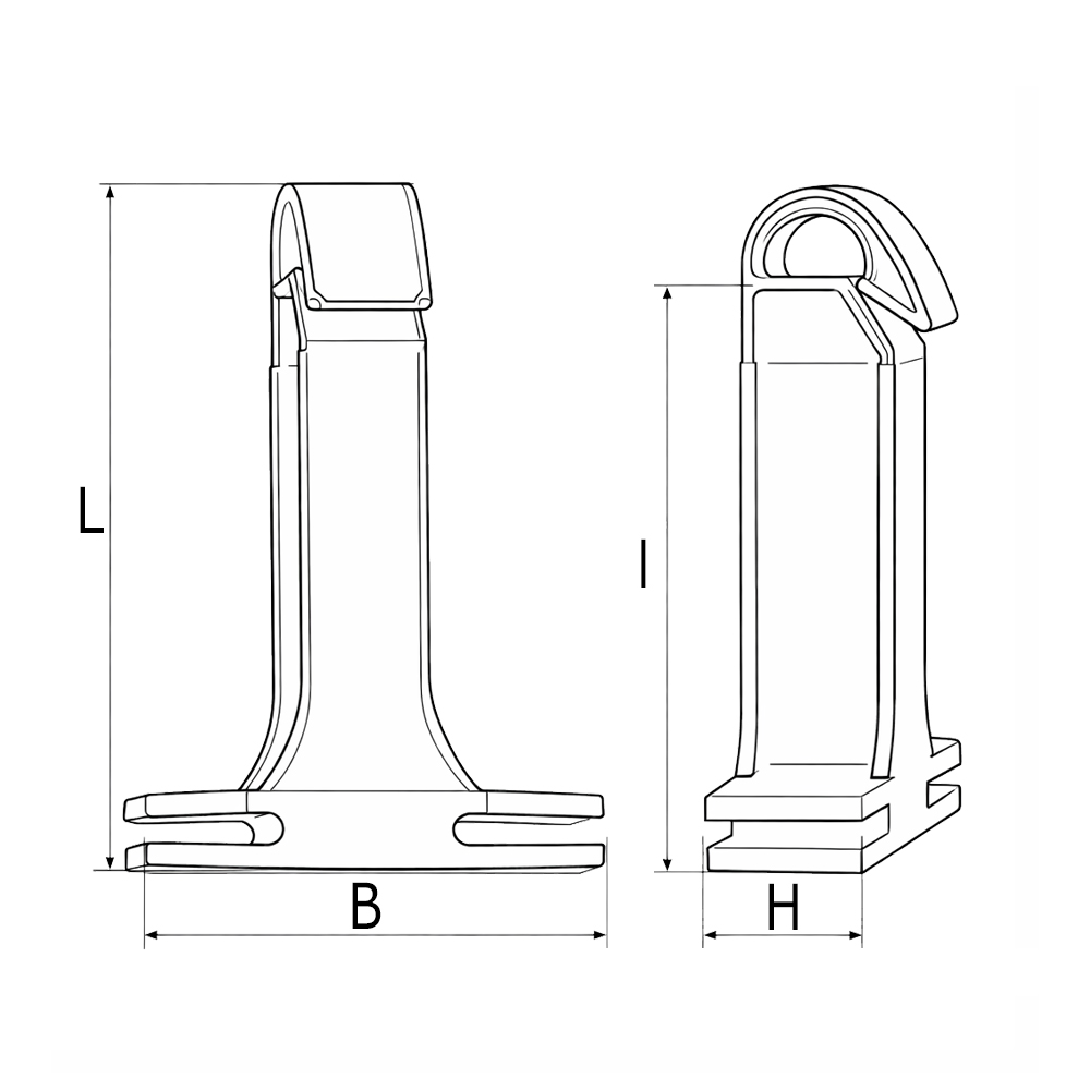 - Afstandisolator voor elektrische afrastering, geschikt voor horizontale klemmontage op 6/5/6 en 8/6/8 staafmathekwerken en leverbaar in 100 mm en 180 mm
