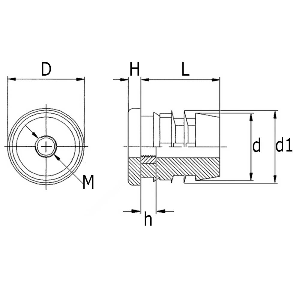 Insteekdoppen (2-delig) met ingelegde moer - ronde buis