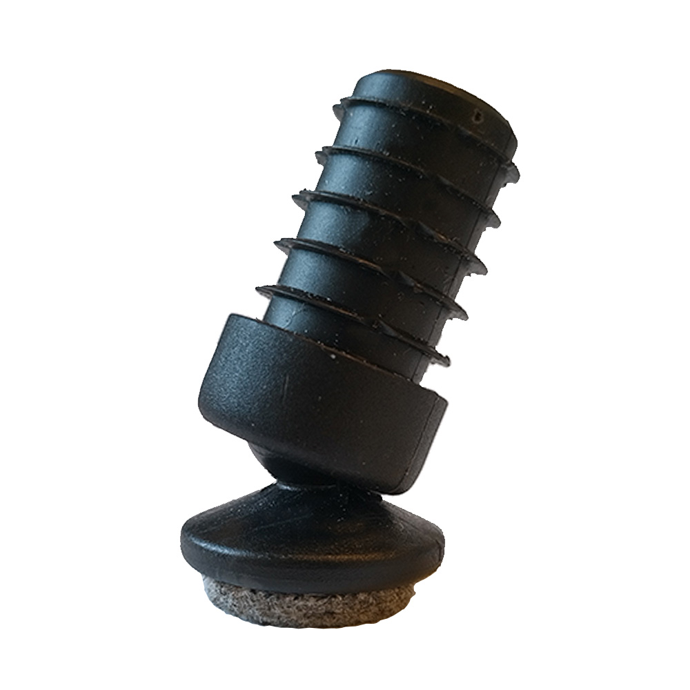 - Ronde insteekdoppen met basculerende voet en vilt glijvlak zijn leverbaar voor stoelpoten met buisdiameters van Ø14mm tot en met Ø28mm met wanddiktes tussen 1,5mm en 2,0mm