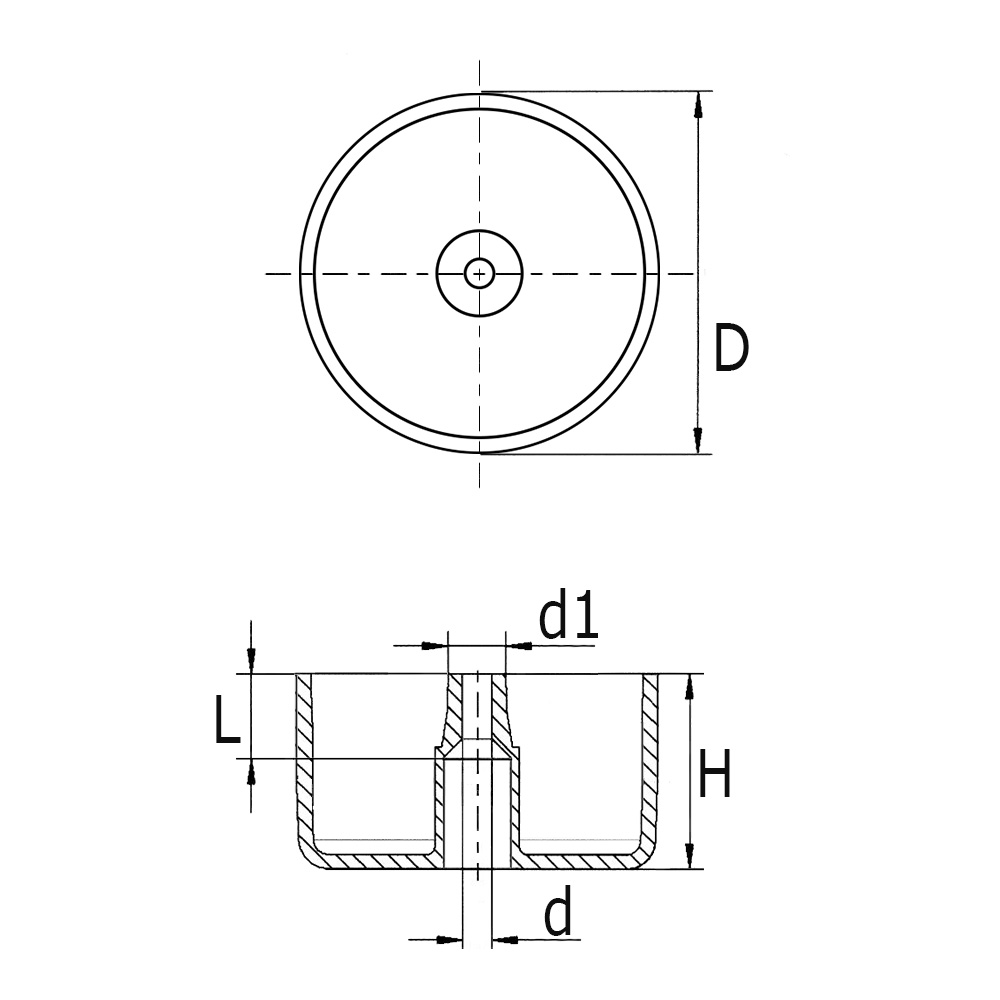 D=Uitwendige-Ø, d=Boring-Ø, H=Hoogte, L=Lengte