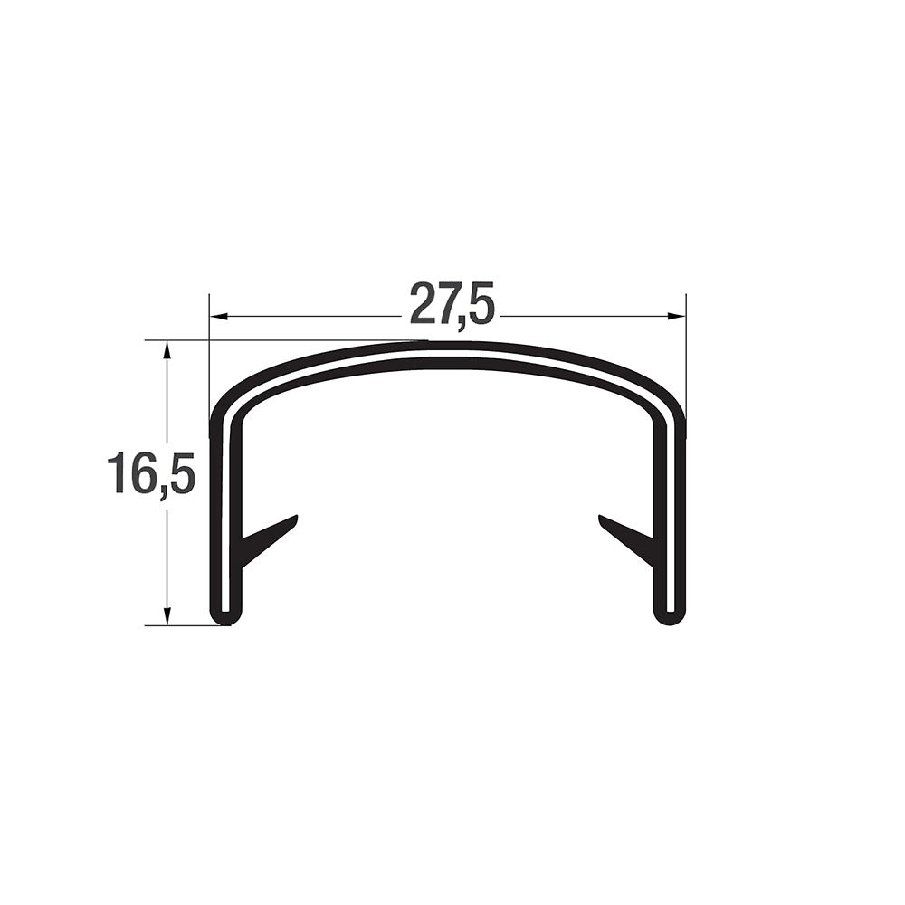 90.A1701901728.00 Kantafwerkprofiel PVC - 17,0-19,0mm - HxB 16,5x27,5mm - zwart - 25 meter 17,0-19,0 27,5 16,5 Zwart PVC Staal klemband inlage