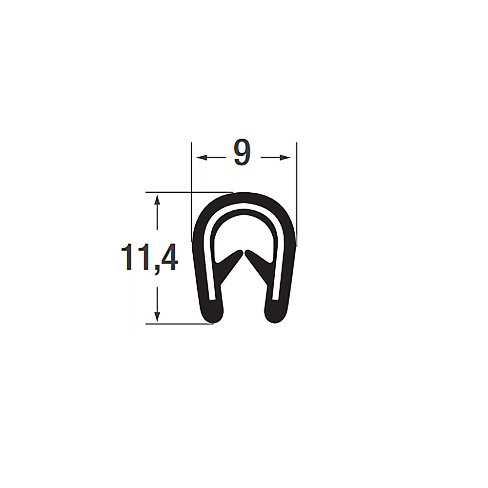 90.A0200401109.00 Kantafwerkprofiel PVC - 2,0-4,0mm - HxB 11,4x9mm - zwart - 100 meter 2,0-4,0 9 11,4 Zwart PVC Staal klemband inlage