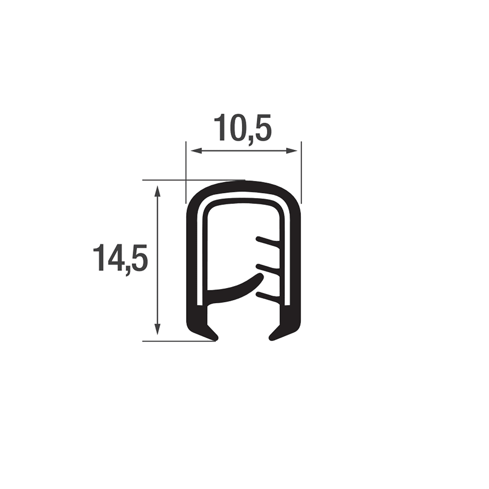 90.A0200501511.00 Kantafwerkprofiel PVC - 2,0-5,0mm - HxB 14,5x10,5mm - zwart - 100 meter 2,0-5,0 10,5 14,5 Zwart PVC Staal klemband inlage