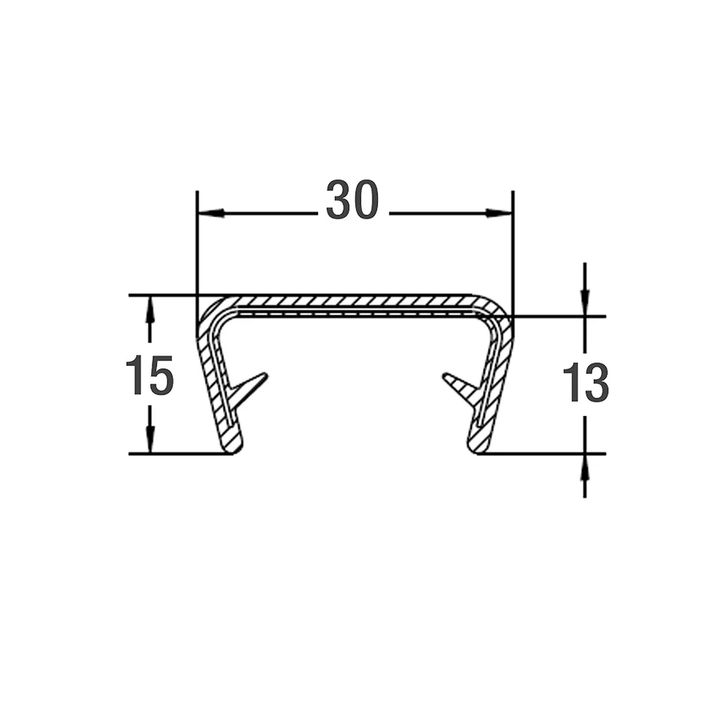 Zelfklemmend kantprofiel 15x30mm - PVC met staalband inlage - klembereik 20-23mmdrawing_1