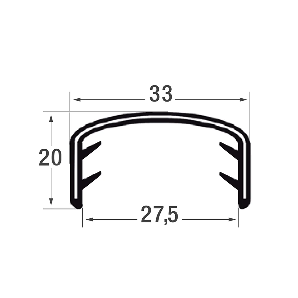 Zelfklemmend kantprofiel 20x33mm - PVC met staalband inlage - klembereik 24-27mmdrawing_1