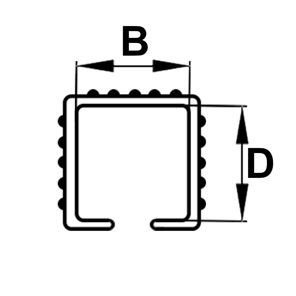 B=Breedte, D=Hoogte, Buisafm=Uitwendige kokermaten, L=Lengte
