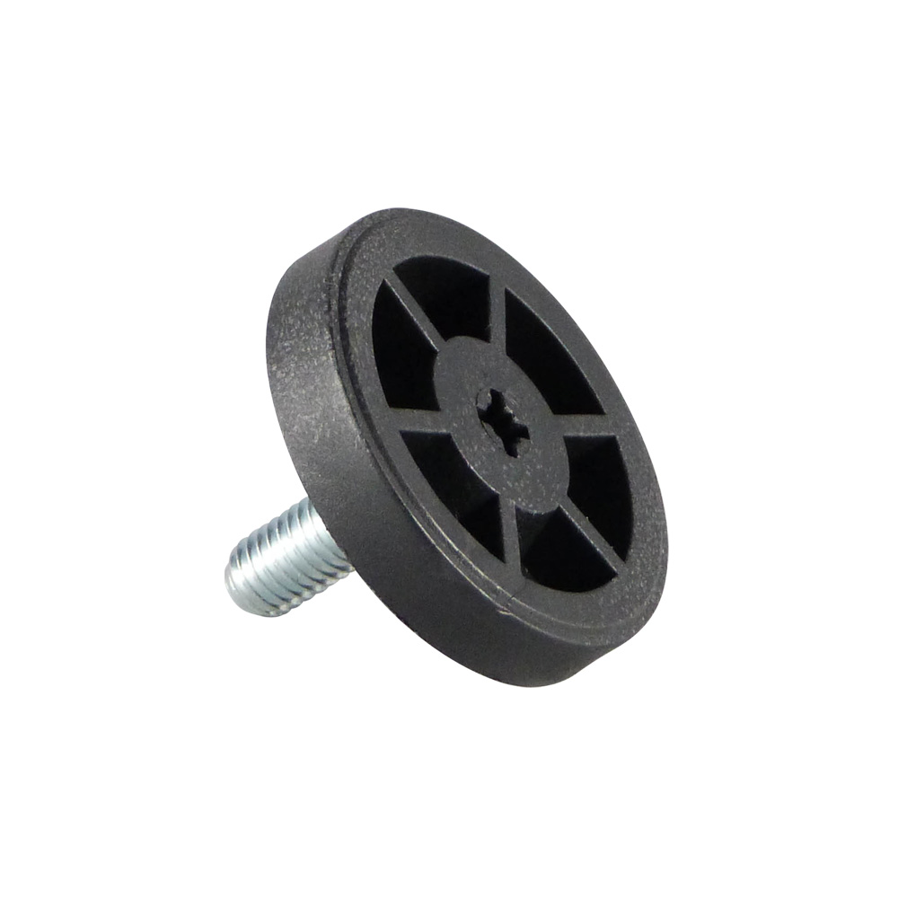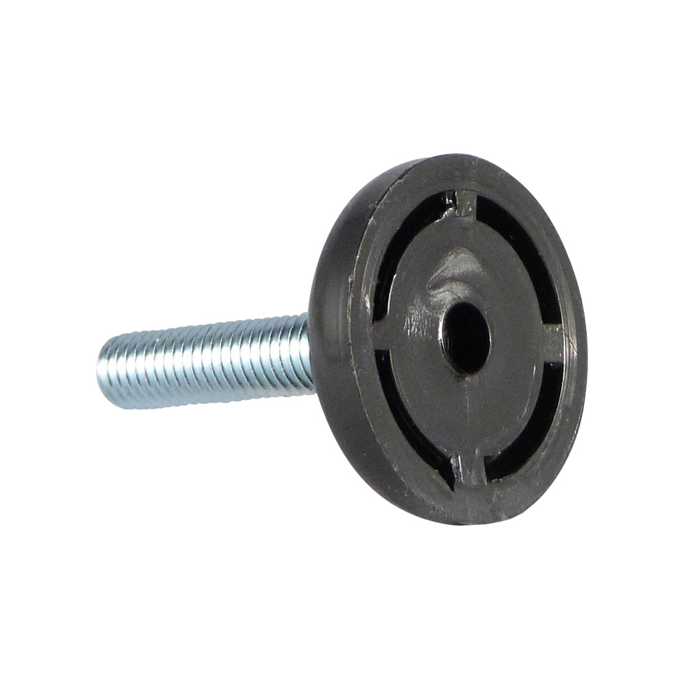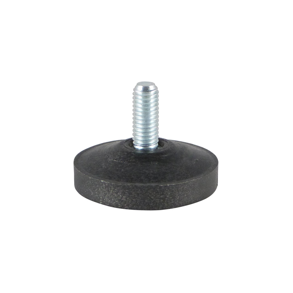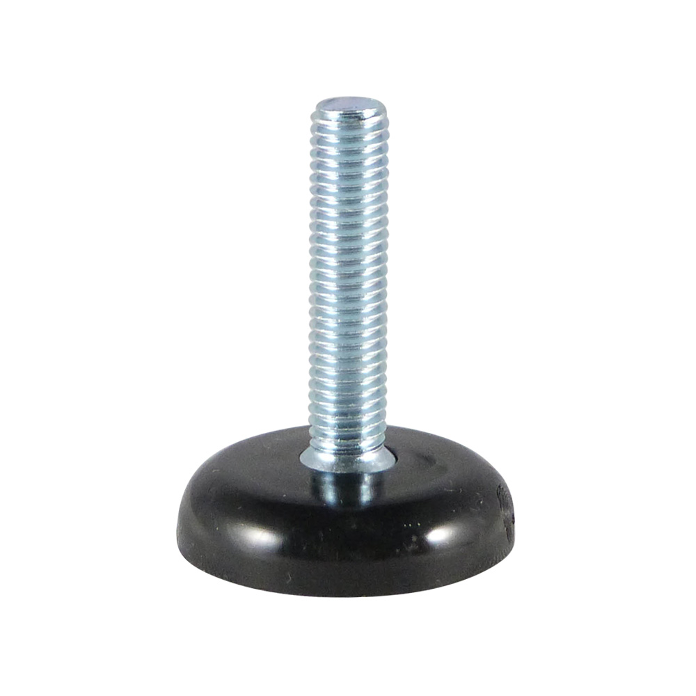 - Stelvoeten met vaste ronde kunststof voet zijn leverbaar met draadspindels van M6 tot en met M10 met effectieve draadlengtes van 7,5mm tot en met 46,5mm