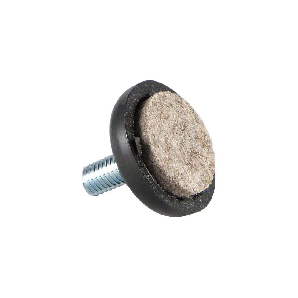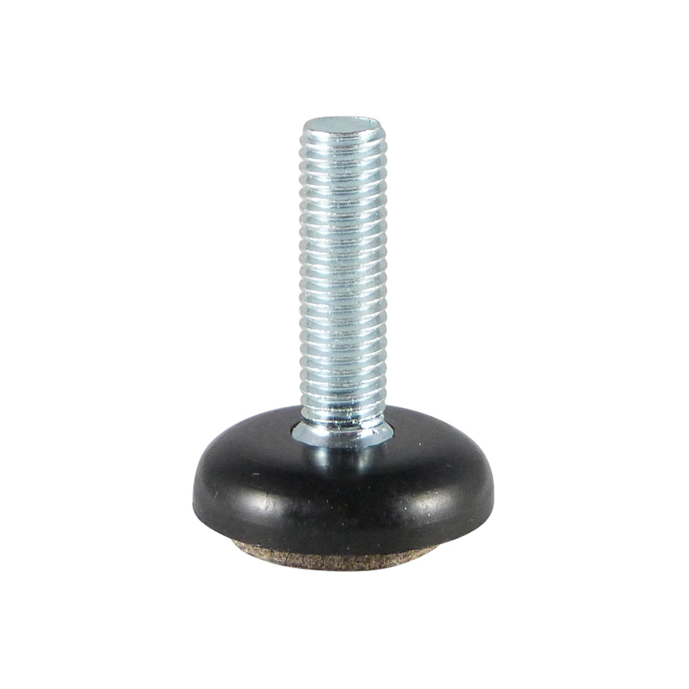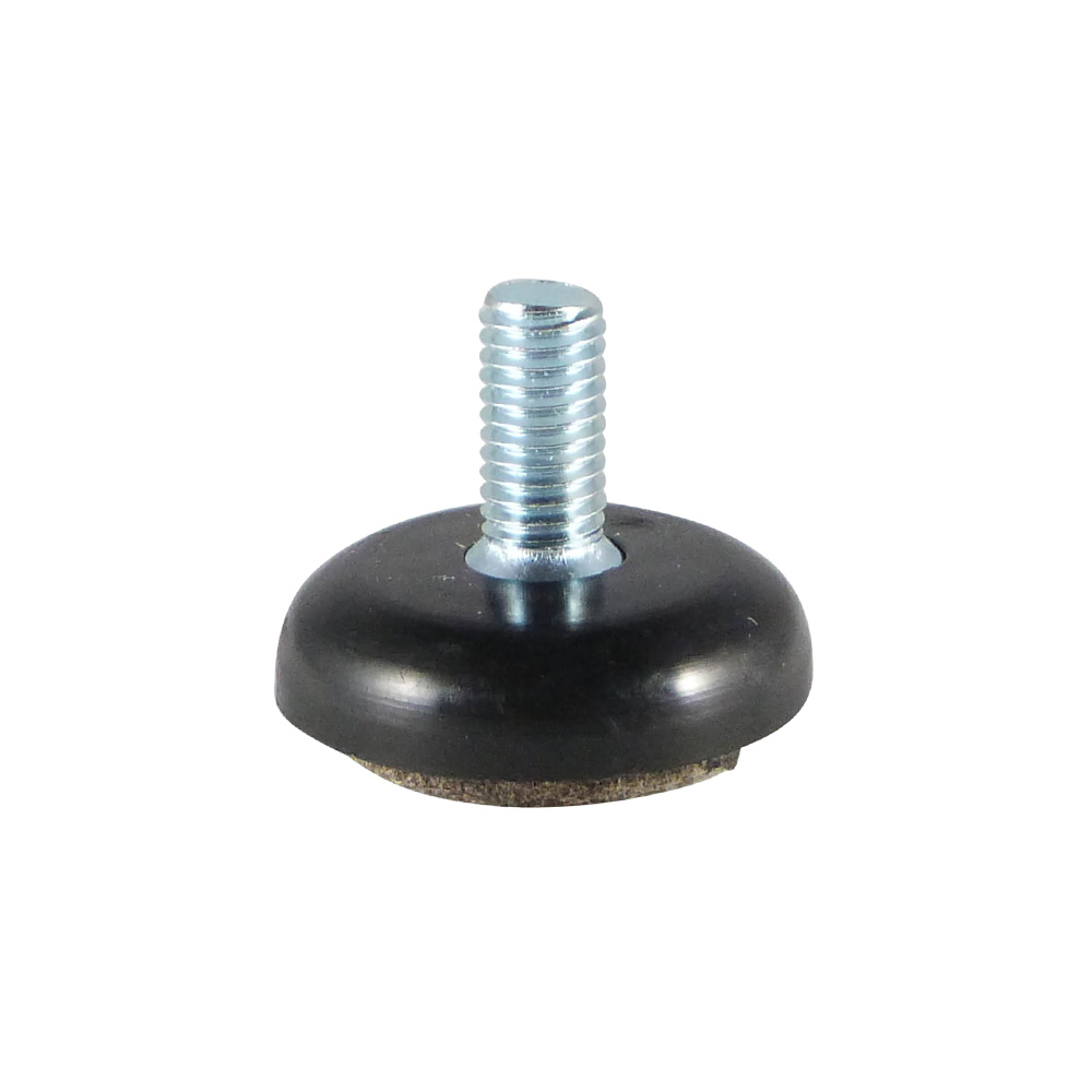 - Stelvoeten met vaste ronde kunststof voet met vilt zijn leverbaar met draadspindels van M6 tot en met M10 met draadlengtes van 16mm tot en met 45mm