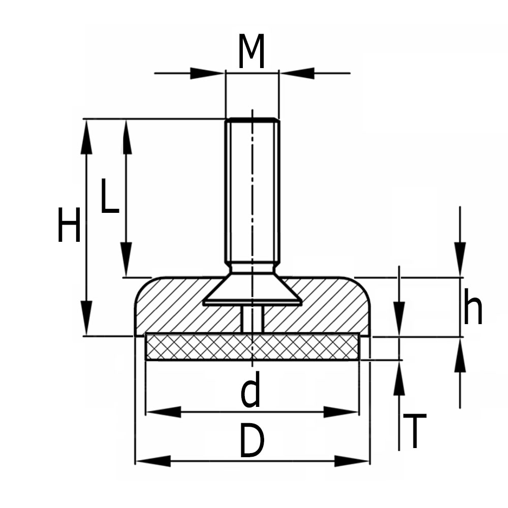 D=Voet-Ø, d=Vilt-Ø, H=Voethoogte, h=Vilt hoogte, L=Effectief bruikbare draadlengte, M=Draadstuk