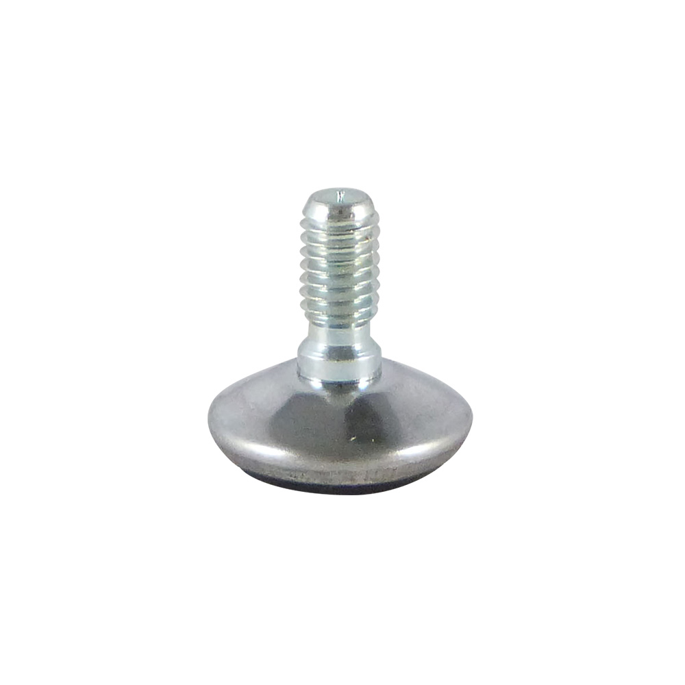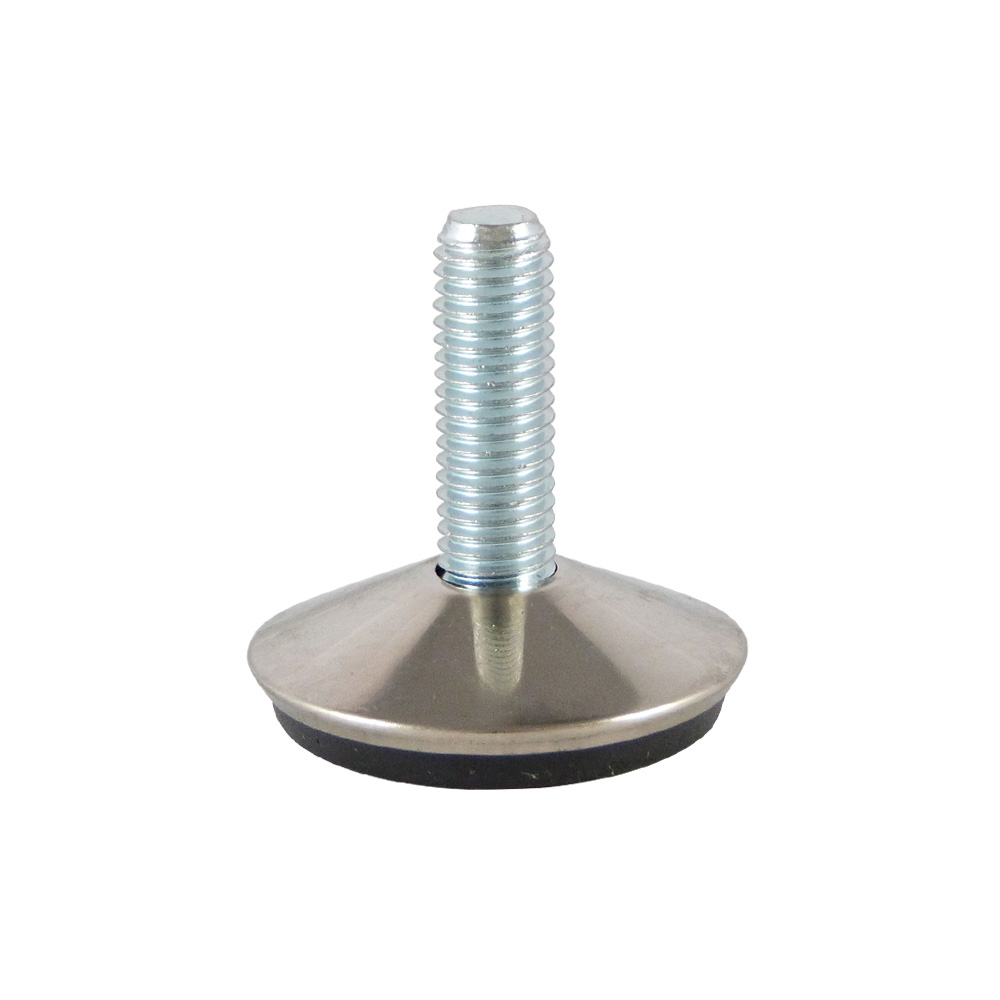 - Stelvoeten met verchroomde of vernikkelde kap en vaste conische voet zijn leverbaar met draadspindels van M6 tot en met M12 met draadlengtes van 13mm tot en met 30mm