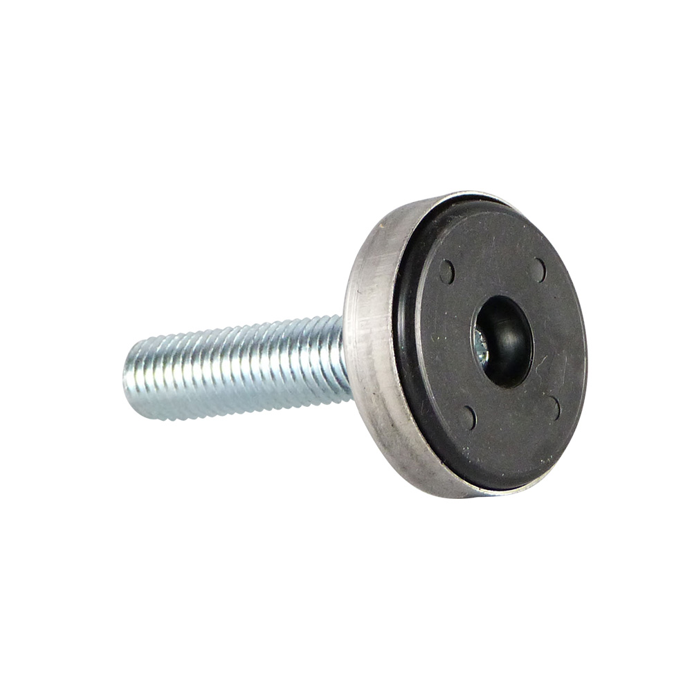 - Stelvoeten met cilindrische RVS kap en kunststof voet zijn leverbaar met staal verzinkte draadspindels van M8 tot en met M12 met draadlengtes van 16mm tot en met 120mm