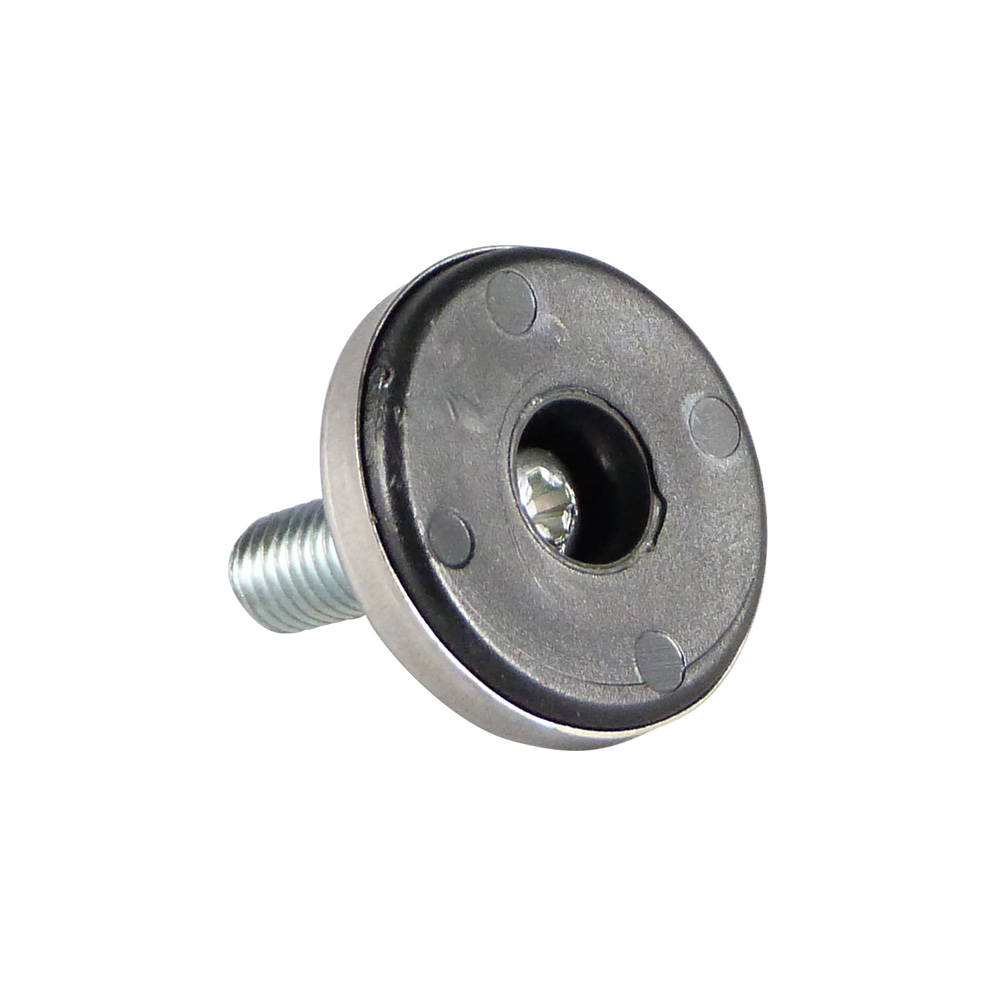 Materiaal: Voet - PP (Polypropyleen), Draadspindel - (DIN 558-4.6-A2F) staal verzinkt, Sierkap - RVS (Roestvaststaal)