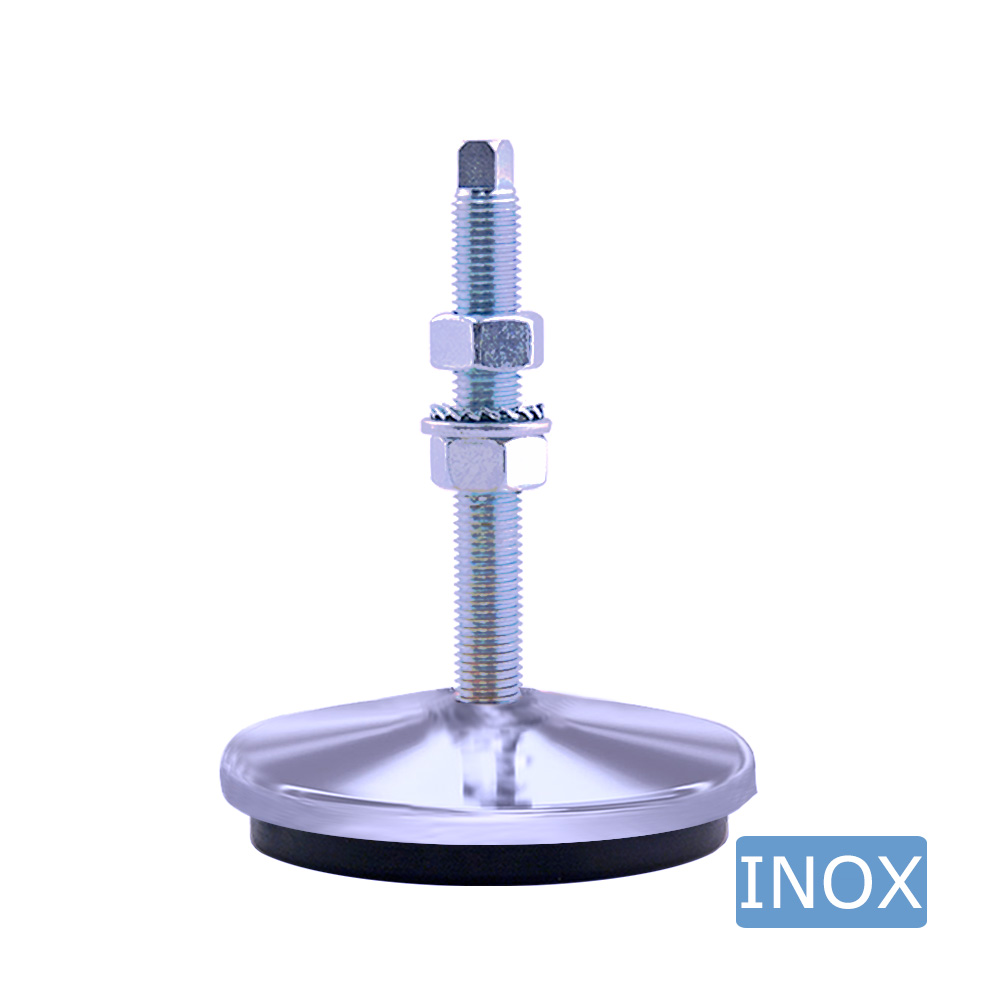 Materiaal: Draadspindel – RVS A2 (AISI 304 / 1.4301), Voet - RVS A2 (AISI 304 / 1.4301), Rubber - NBR (Nitrilbutadieenrubber) 80° Shore