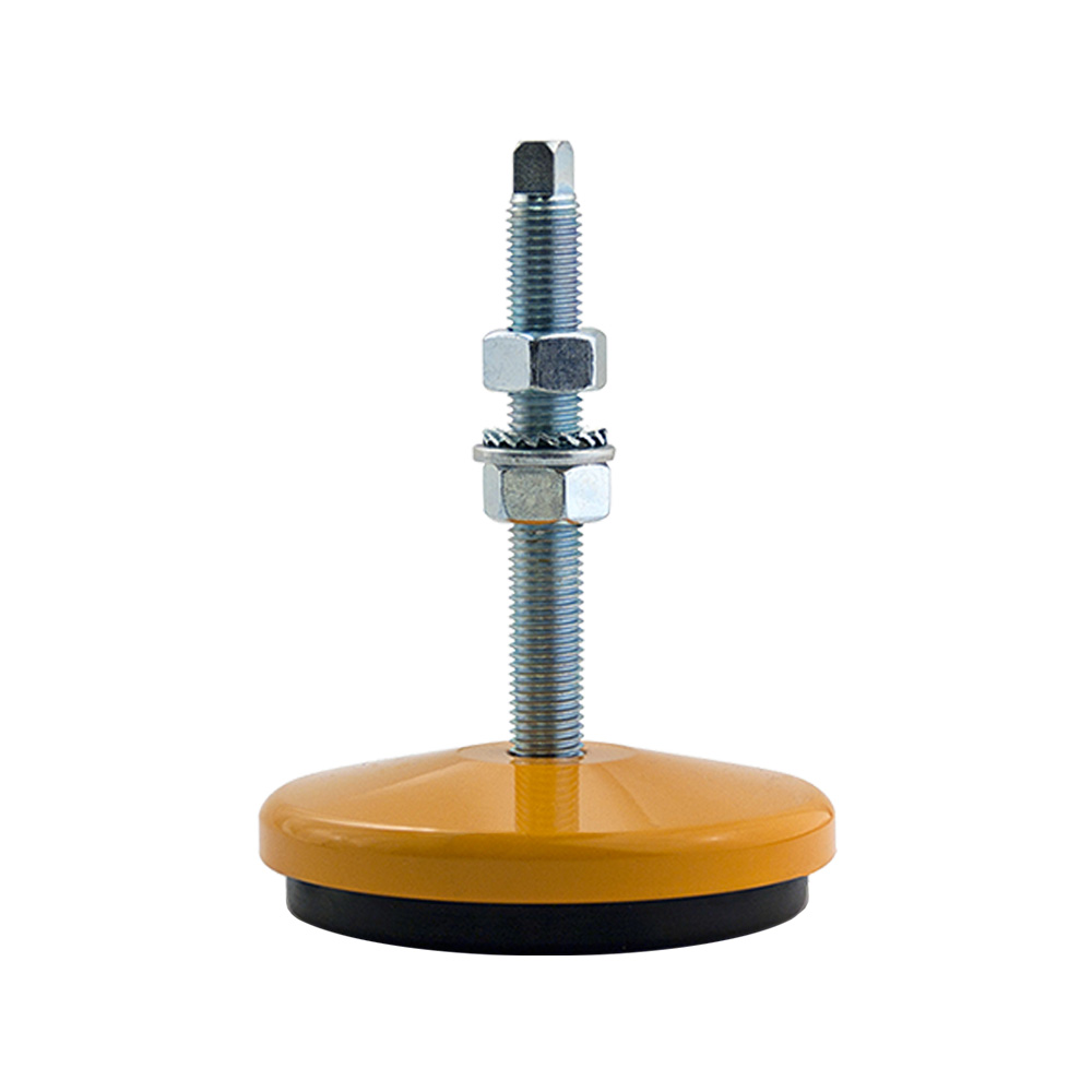 - Trillingsdempende machine stelvoeten zijn standaard leverbaar in voetdiameters vanaf Ø84mm tot en met Ø230mm met draadspindels in respectievelijk M12, M14, M16, M20 of M24 schorefdraad (metrisch normaal)