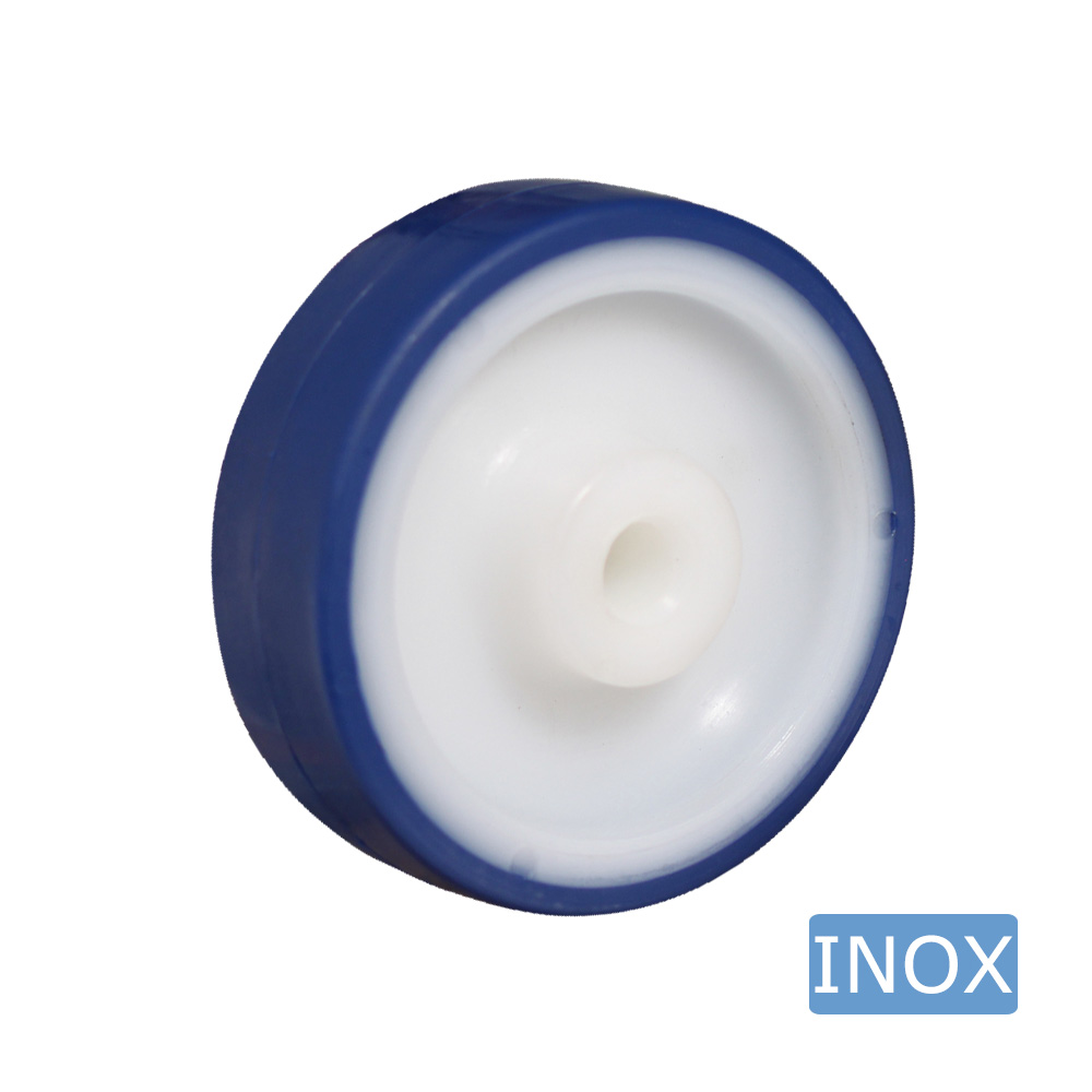 - Hygiënische wielen met blauwe band zijn leverbaar in de wielmaten Ø80mm tot en met Ø200mm