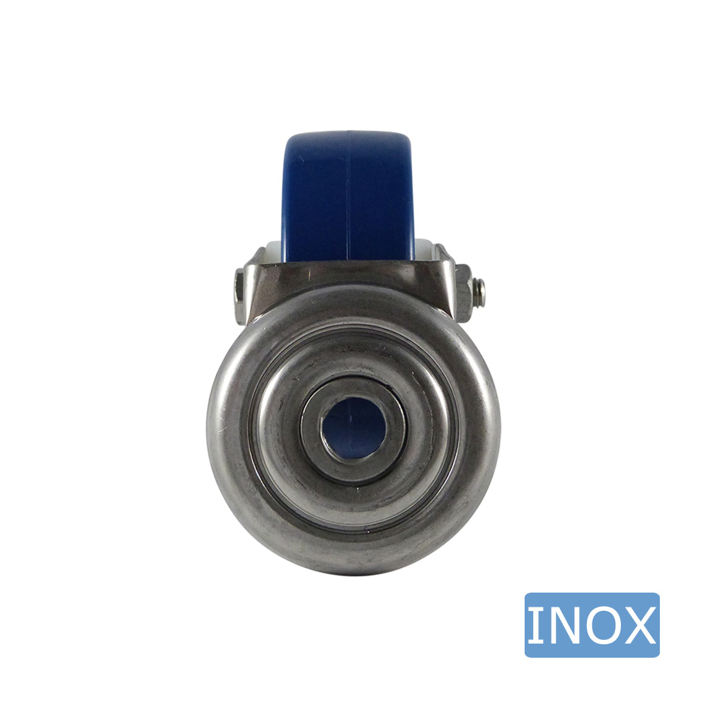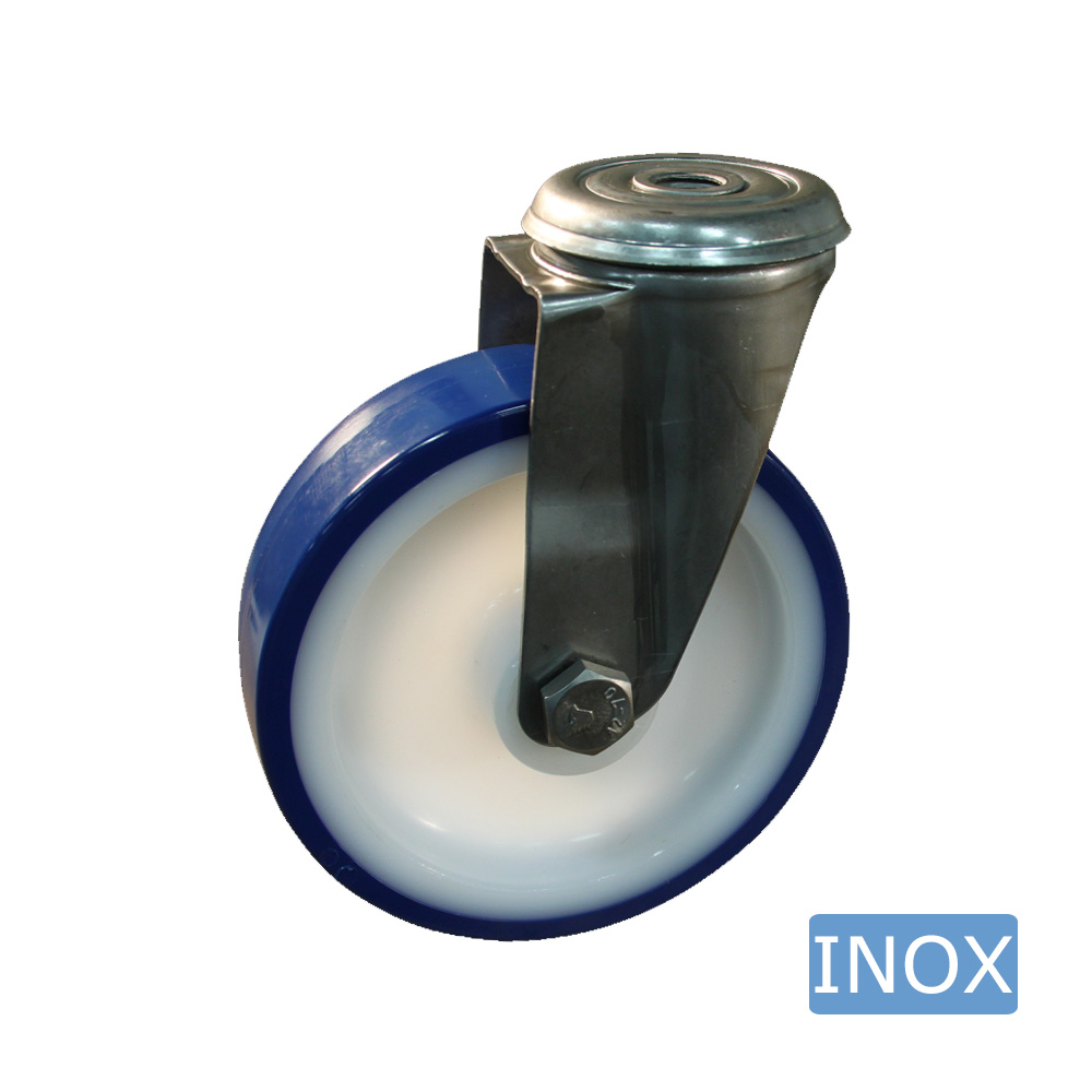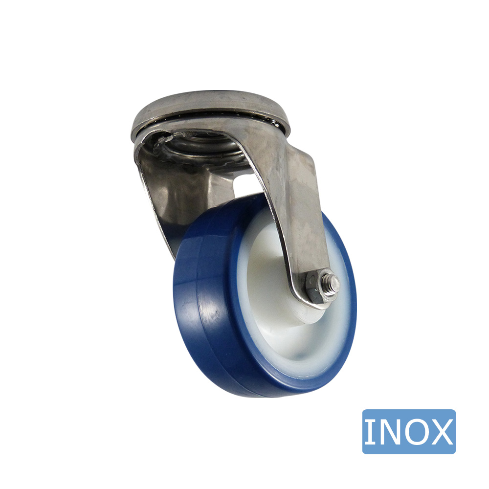 - Hygiënische RVS zwenkwielen met blauwe band zijn leverbaar in de wielmaten Ø80mm tot en met Ø150mm