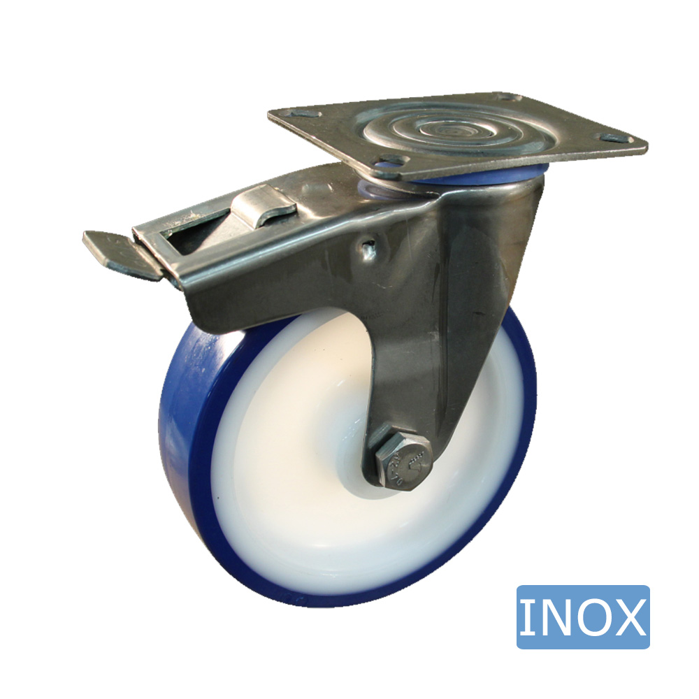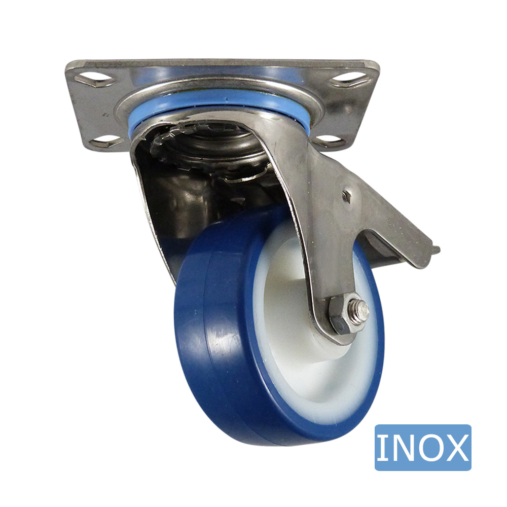 RVS zwenkwiel hygiëne met rem - plaat - TPU band