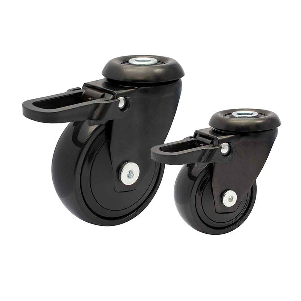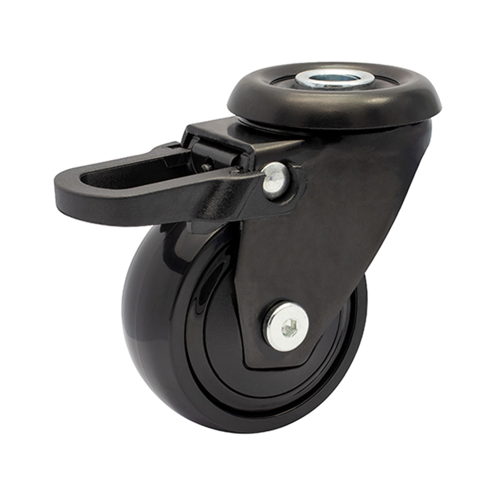 Meubel zwenkwiel Ø50 TPE loopvlak met rem - kogellager - boutgat Ø10 - zwart