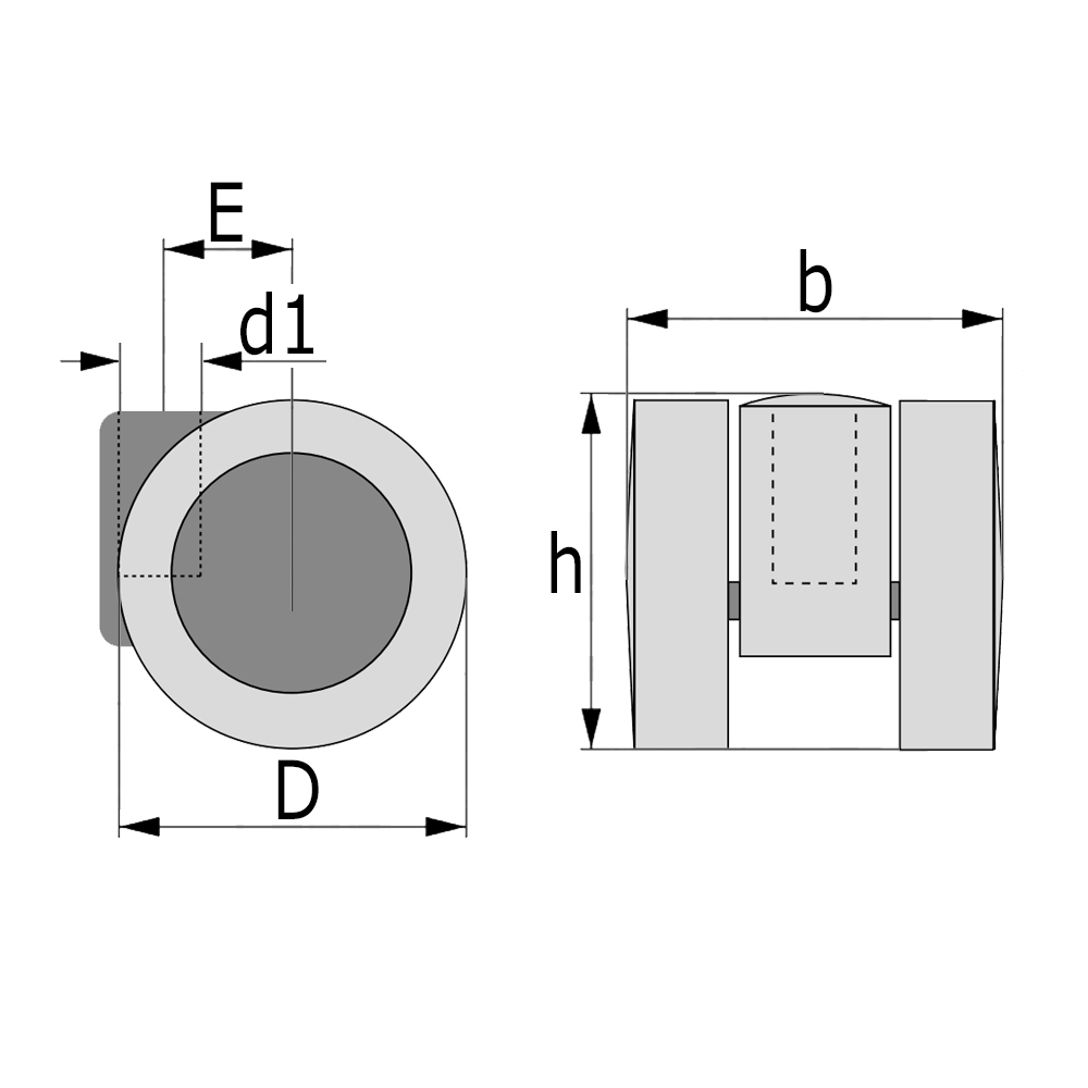 Zwenkwiel PA Ø36mm, draadstift M6x10mm, PU band