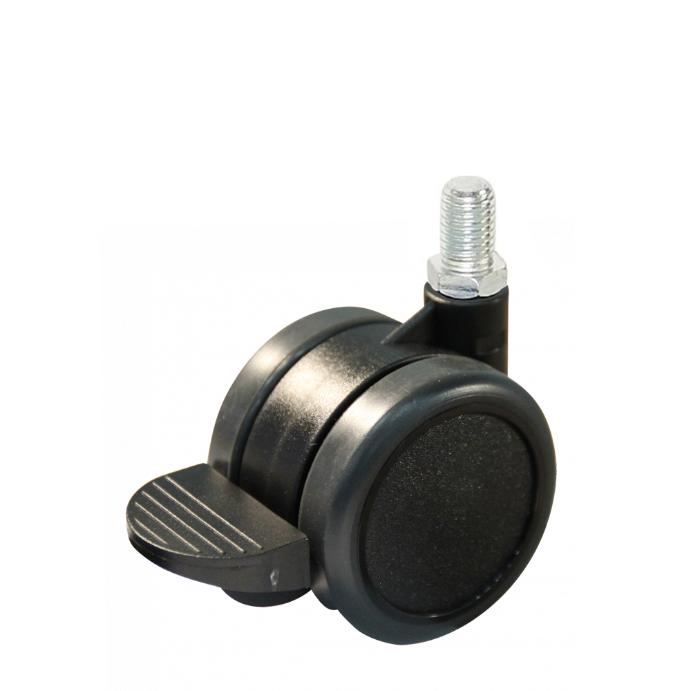 Meubelwielen Ø50mm dubbelrol met PU band - synchroon rem