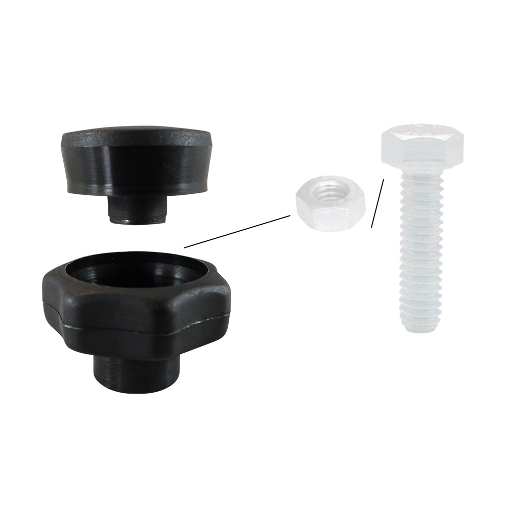 D=Knop-Ø, d=Schaft-Ø, H=Totale hoogte, M=Schroefdraad, t=dikte/lengte verlies bij boutmontage