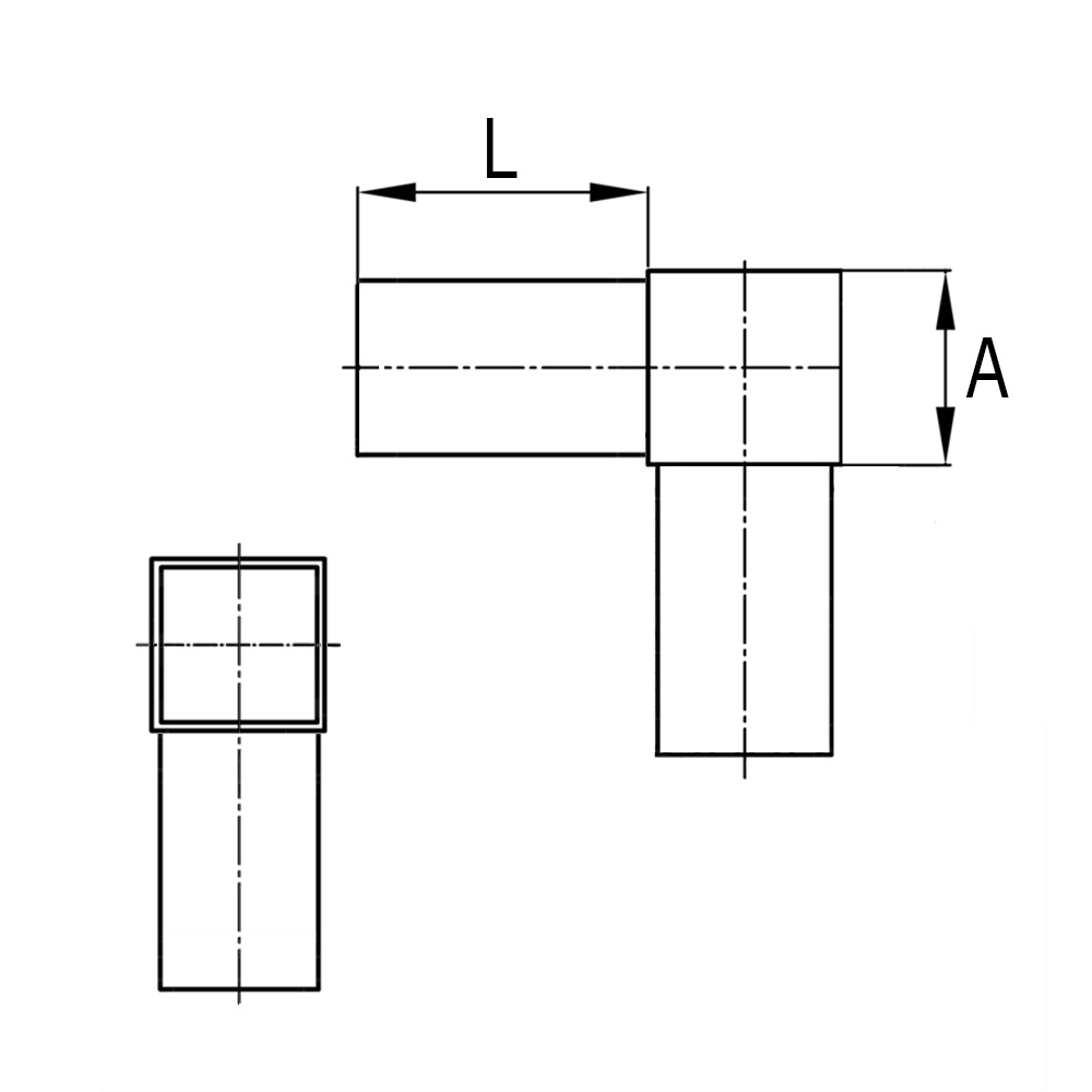 Buisafmeting=Uitwendige kokermaat en wanddikte, d=Kraaglengte, L=Lengte schaft