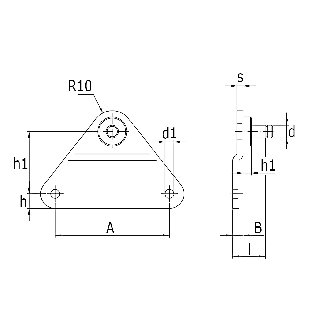 Gasveer bevestigingsplaat driehoekig 62x62x62x3,0mm - pen Ø6x14mm - max 500N - staal verzinkt