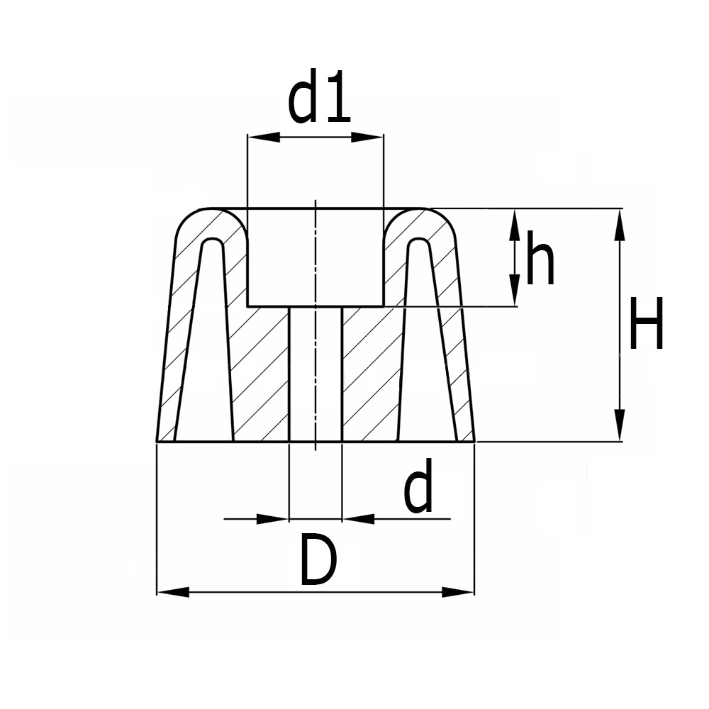 D=Buiten-Ø, d=Boring-Ø, d1=Verzonken-Ø, H=Hoogte, h=Diepte verzonken deel