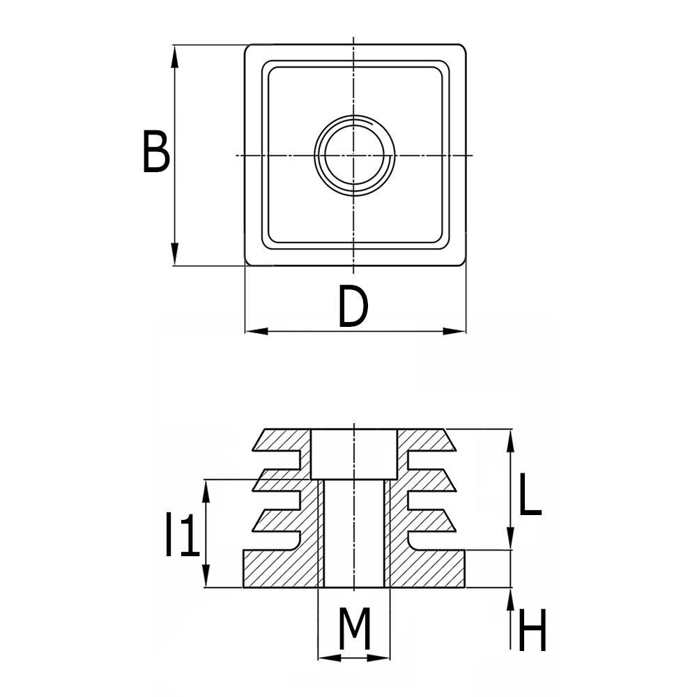 AxB=Kopmaten, Boring=Boring, Buisafm.=Uitwendige Buismaten, K=maximale statische belasting in kg, L=Schaftlengte, l=Kopdikte, M=Schroefdraadmaat, Mat.=Materiaal, Type=Type, Uitv.=Wanddikte