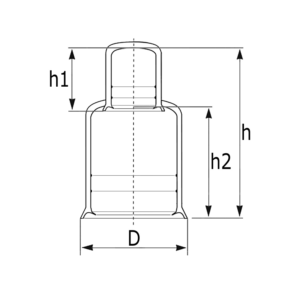 D=Uitwendige-Ø, H=Totale inwendige hoogte, H1= Inwendige hoogte (bij benadering), H2=Inwendige hoogte (bij benadering), M=Schroefdraadmaat Metrisch, SW=Sleutelwijdte, Uitv.=*=Niet geschikt voor contramoeren, UNC=Schroefdraadmaat UNC