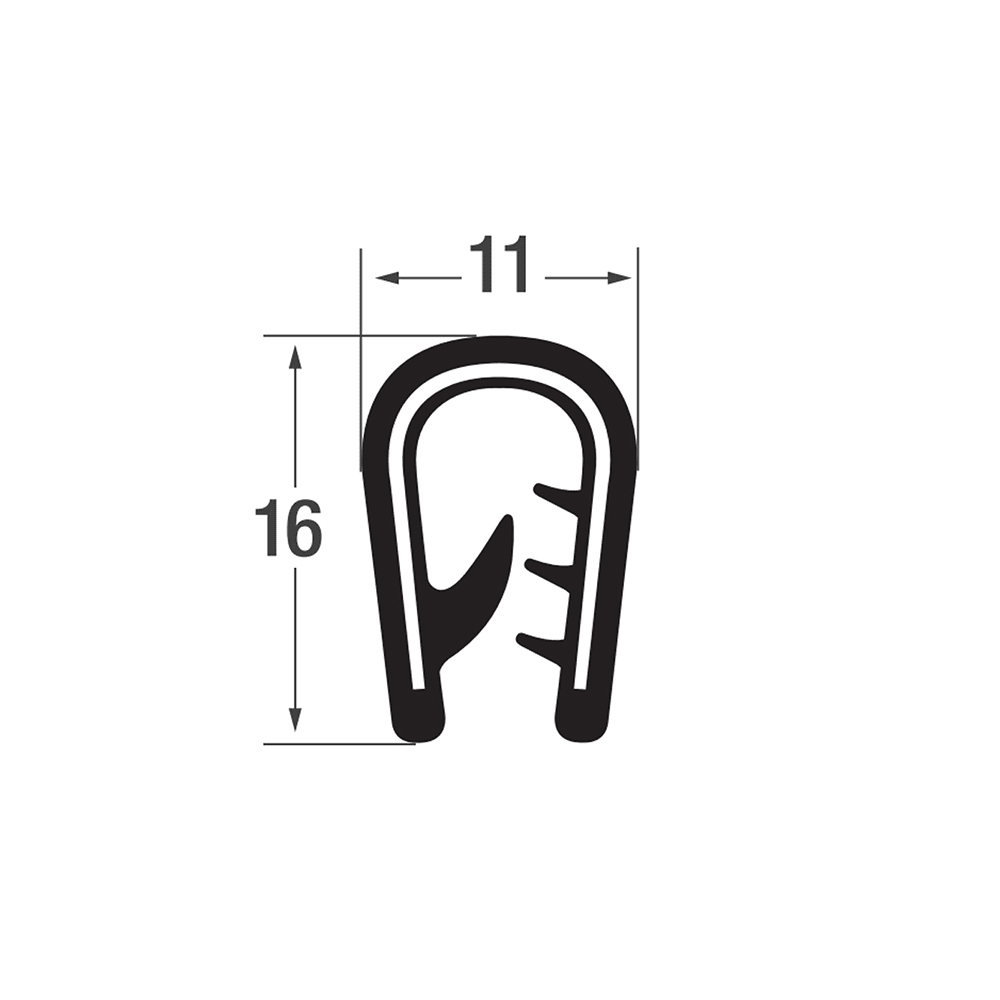 Zelfklemmend kantprofiel 16x11mm - PVC met staalband inlage - klembereik 2-6mm