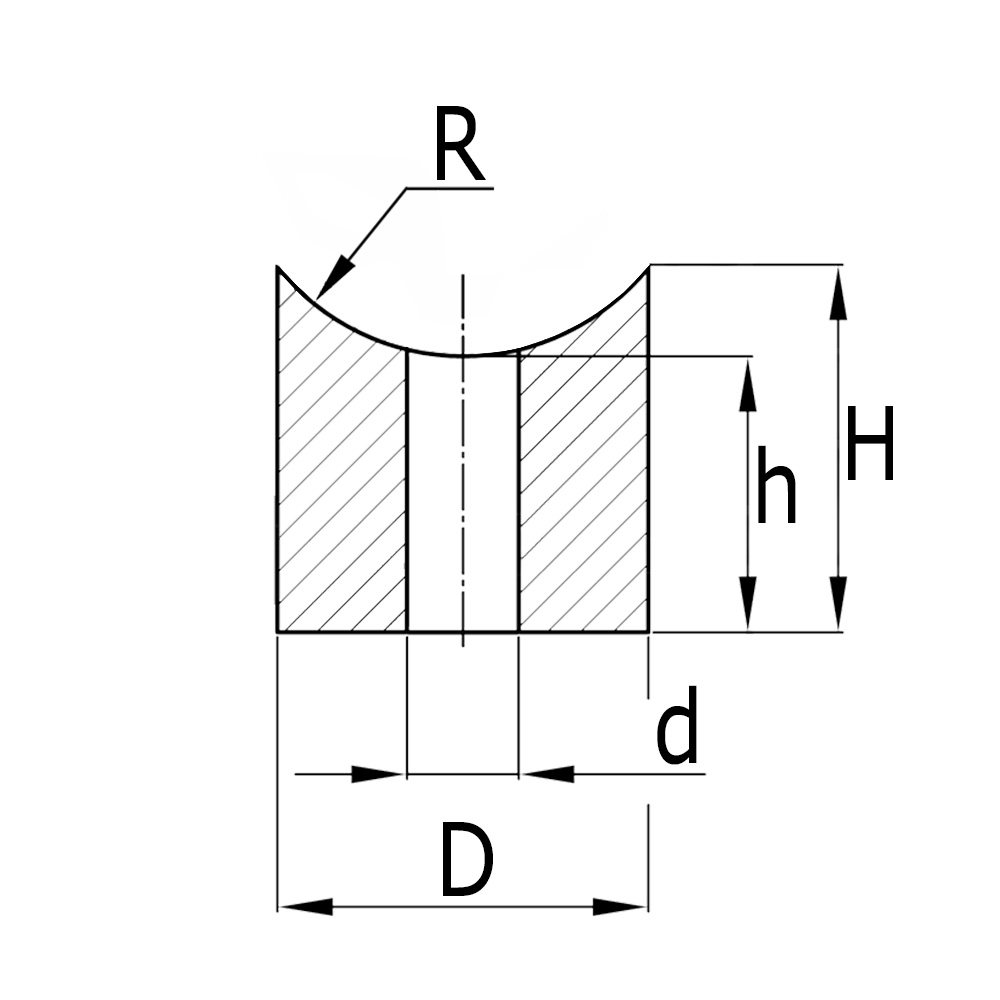 Buisafmeting=Geschikt voor buis-Ø, D=Uitwendige-Ø, d=Boring-Ø, H=Hoogte, h=Nominale hoogte.
